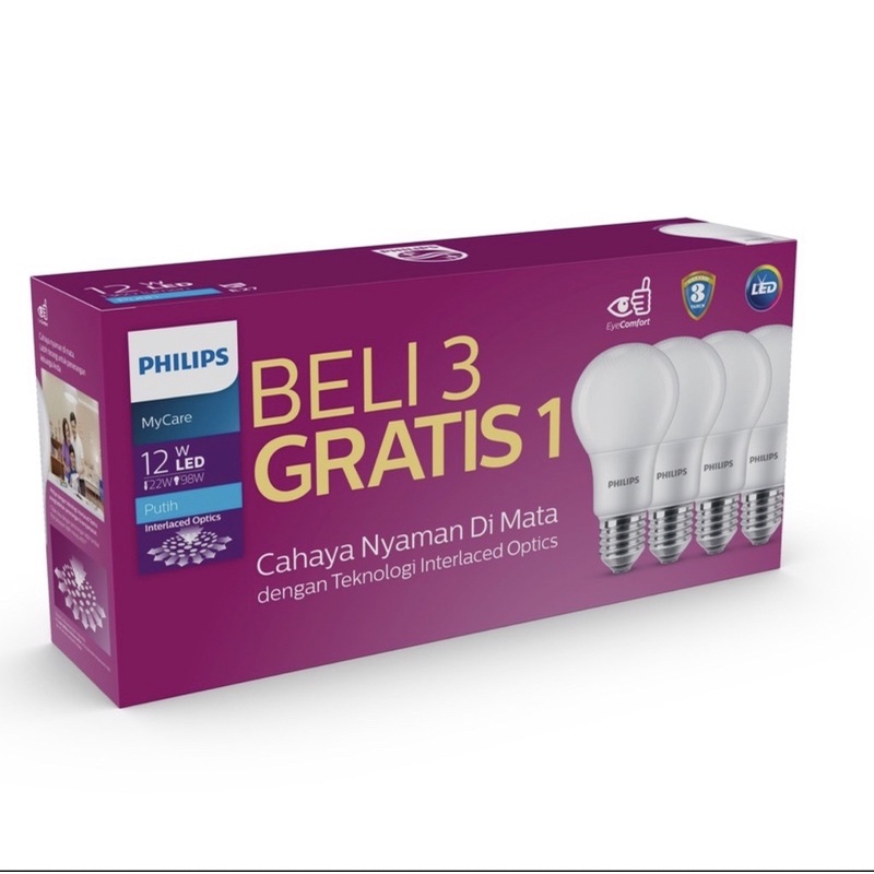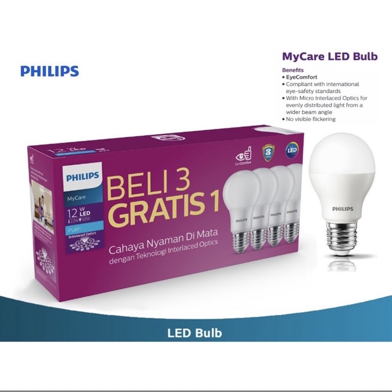 Led philips 12 watt/lampu philips led beli 3 gratis 1 (cahaya putih)