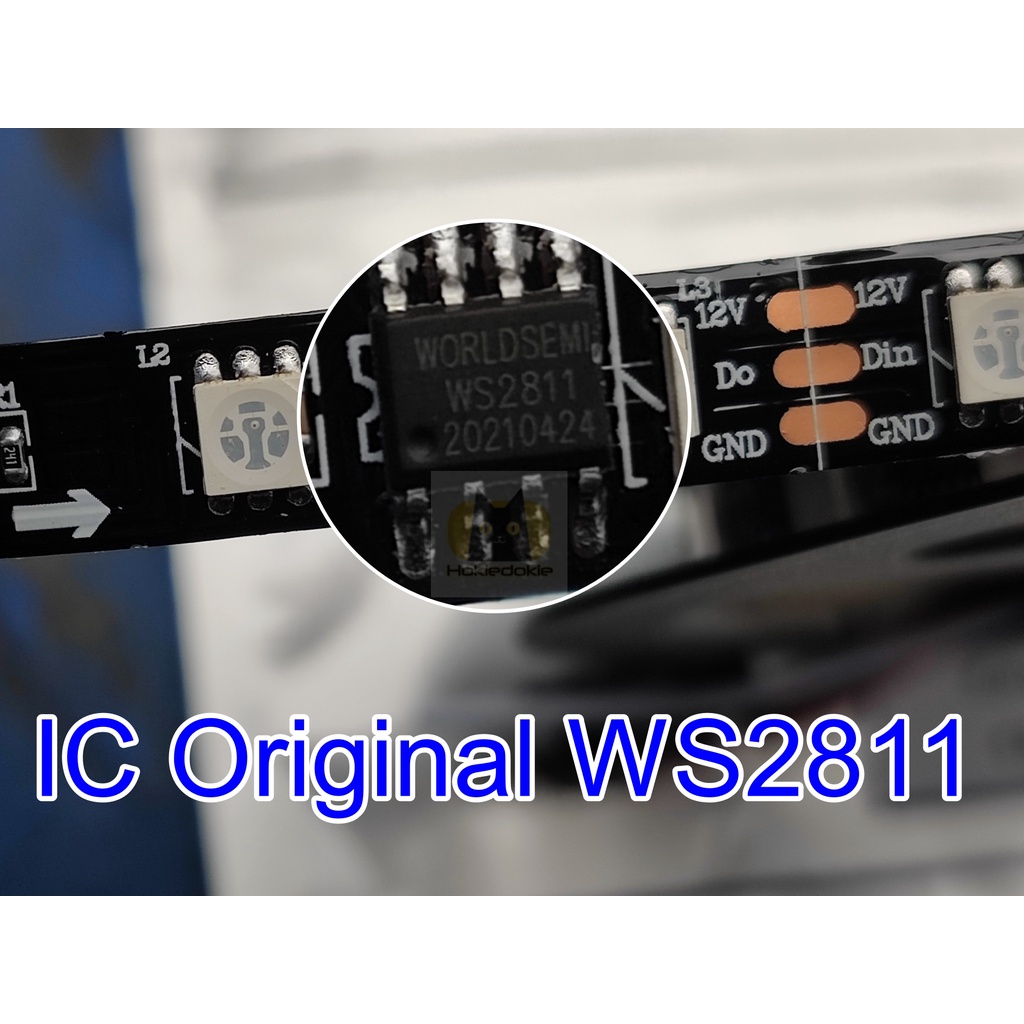 Led strip rgb original WS2811 12v 5m 60led/m Indoor ip20 PCB Hitam