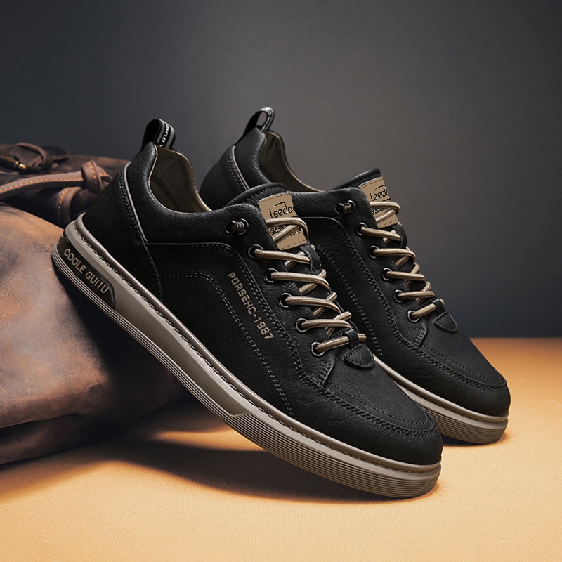 Leedoo Sepatu Pria Formal Sneakers Original Muda Kekinian Tali Hitam Kulit Sepatu Shoes Putih MC421