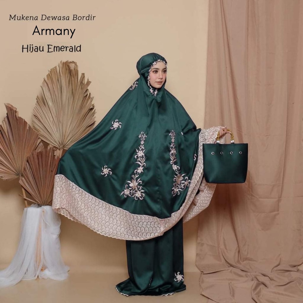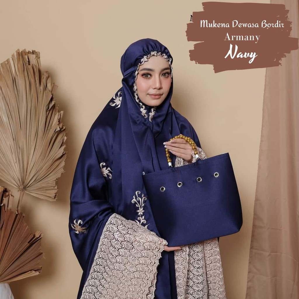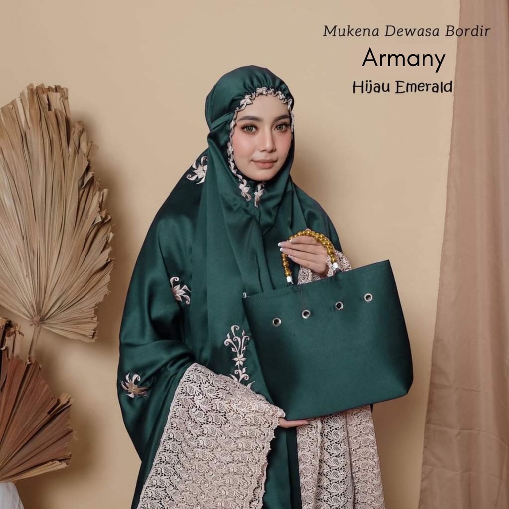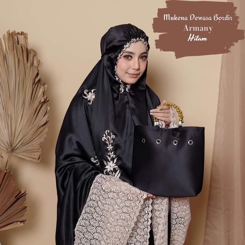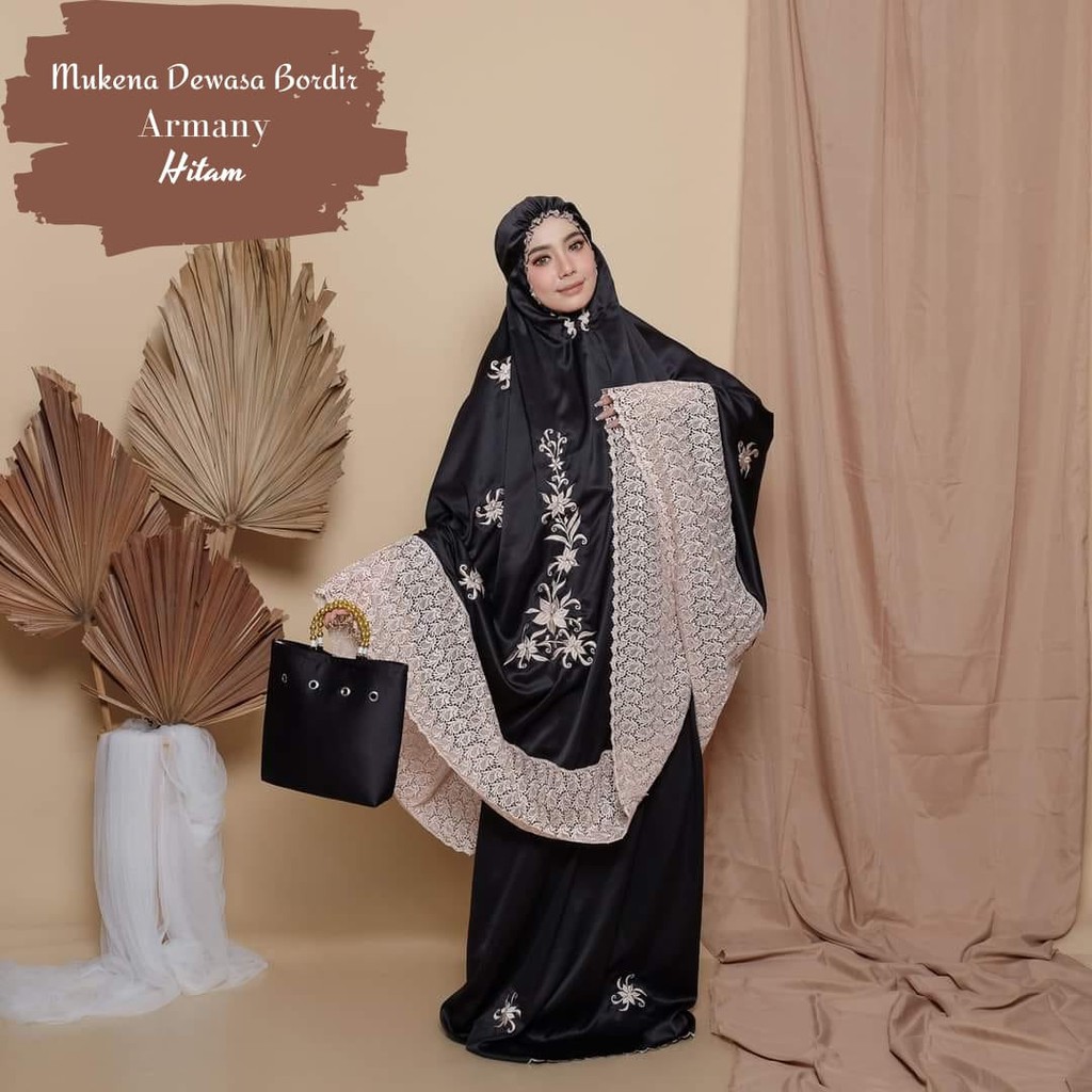 Leesy.id - Mukena Dewasa Bordir Satin Motif Armany