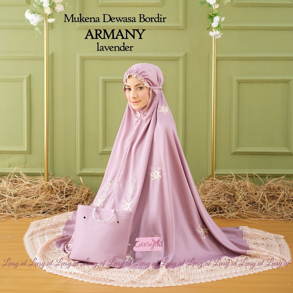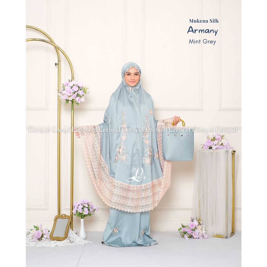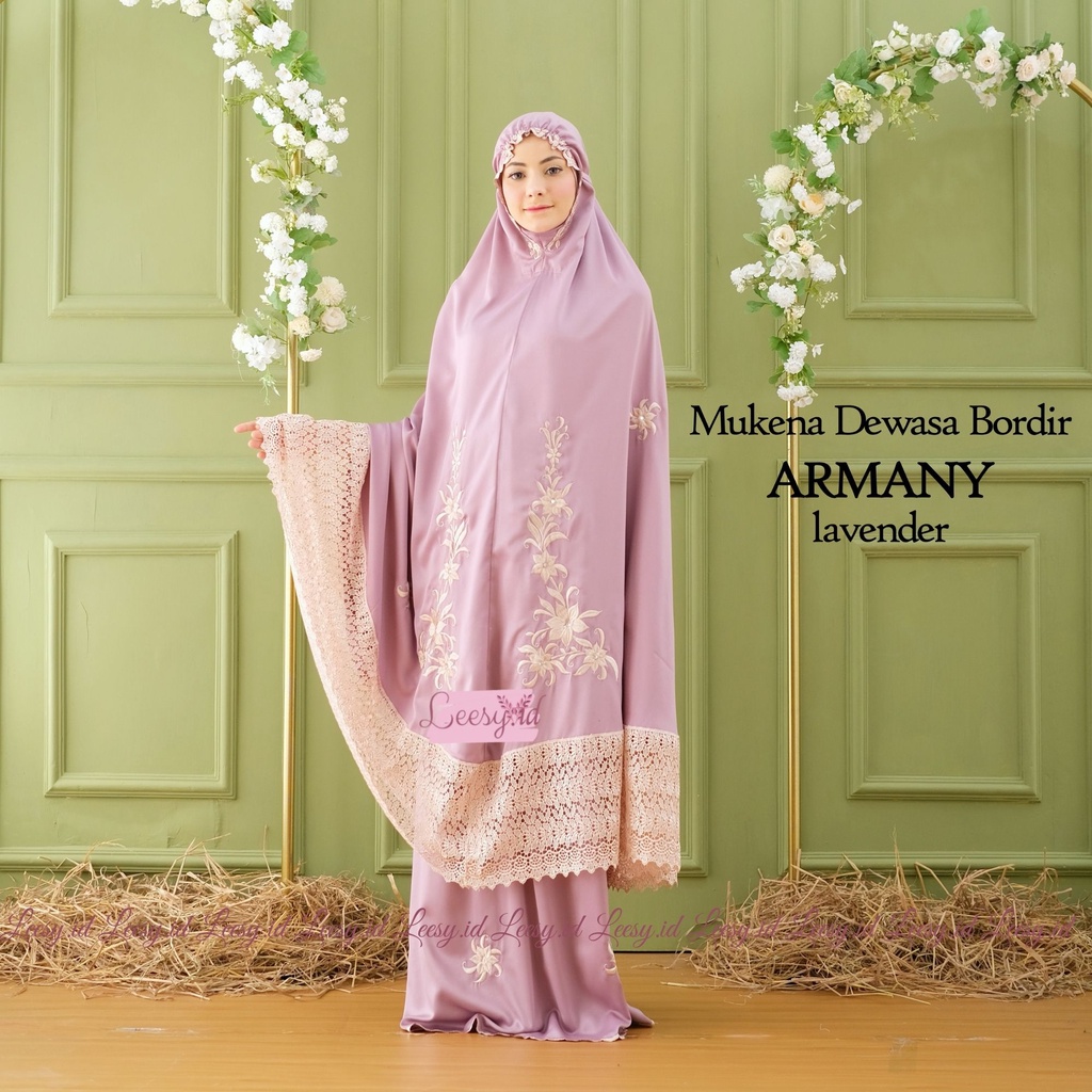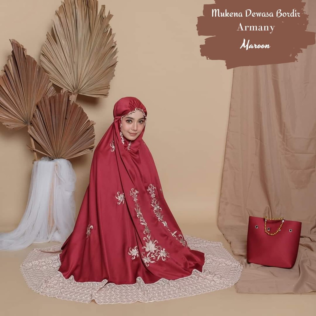 Leesy.id - Mukena Dewasa Bordir Satin Motif Armany