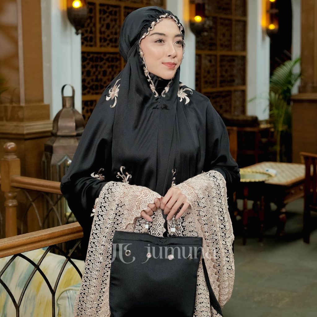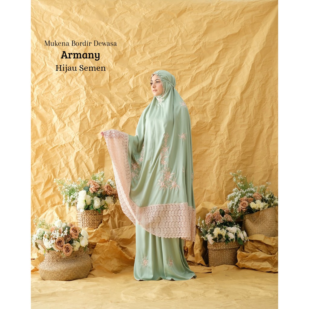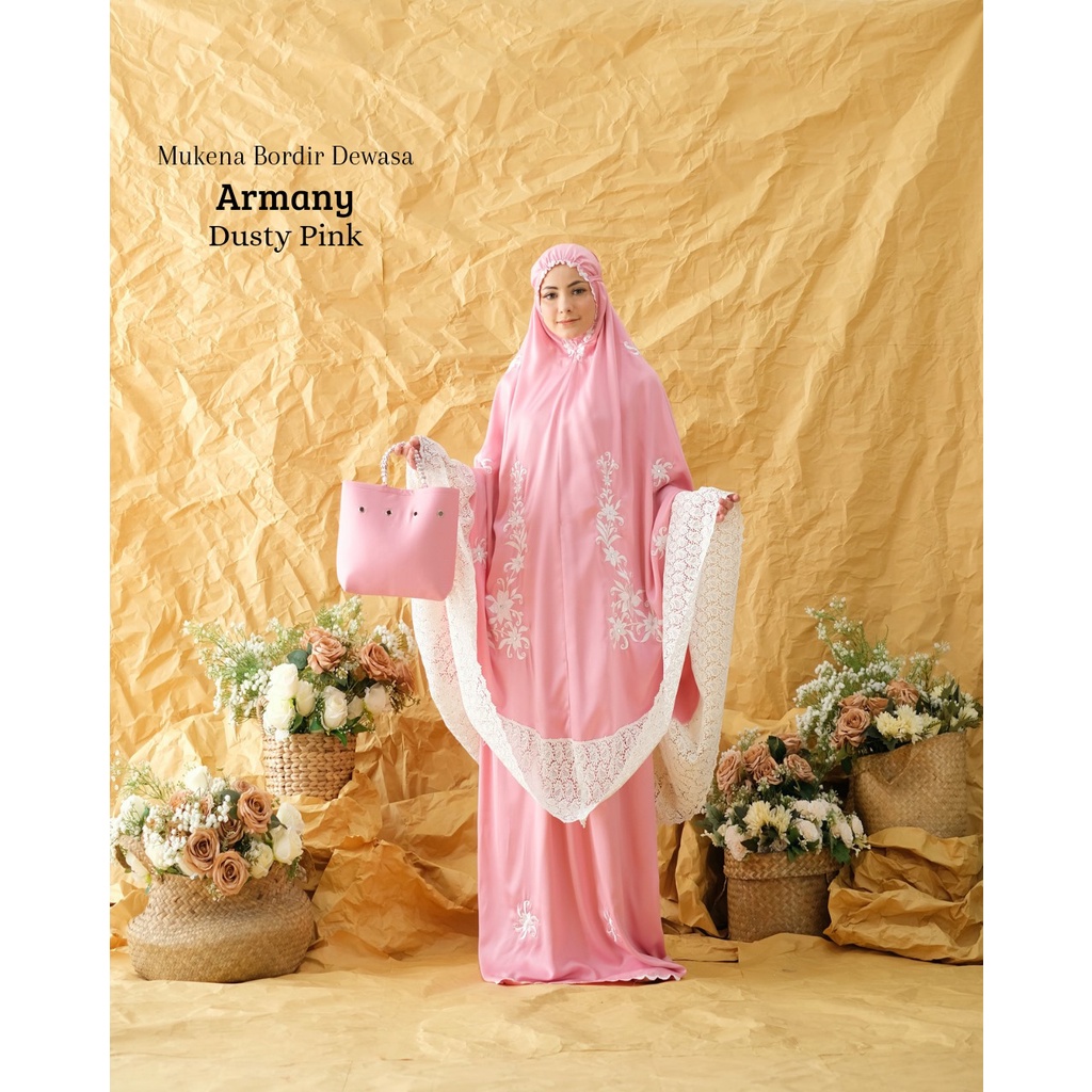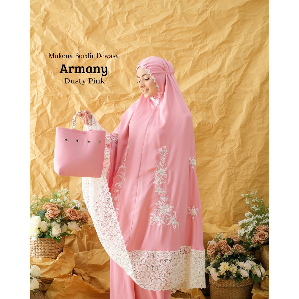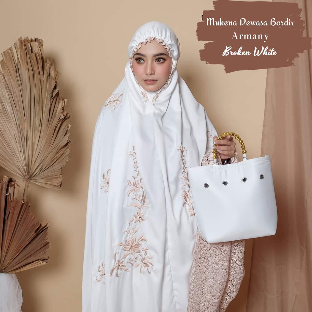 Leesy.id - Mukena Dewasa Bordir Satin Motif Armany