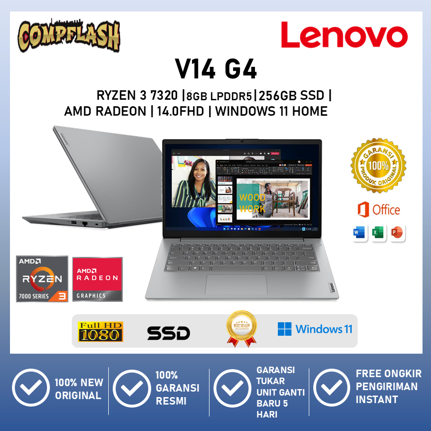 Lenovo V14 G4 Ryzen 3 7320U Ram 8GB SSD 256GB WINDOWS 11 Garansi Resmi LENOVO 2 Tahun