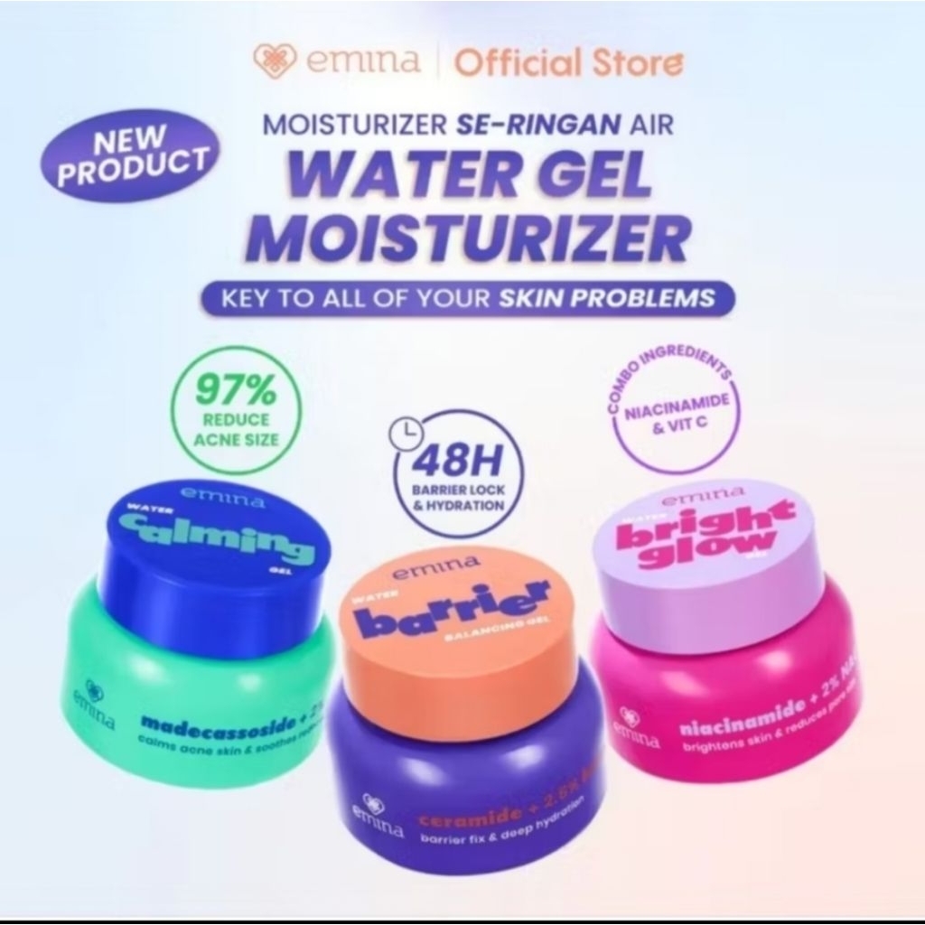 emina water gel moizturizer 30g mencerahkan & mengurangi flek hitam 48H menjaga kelembapan