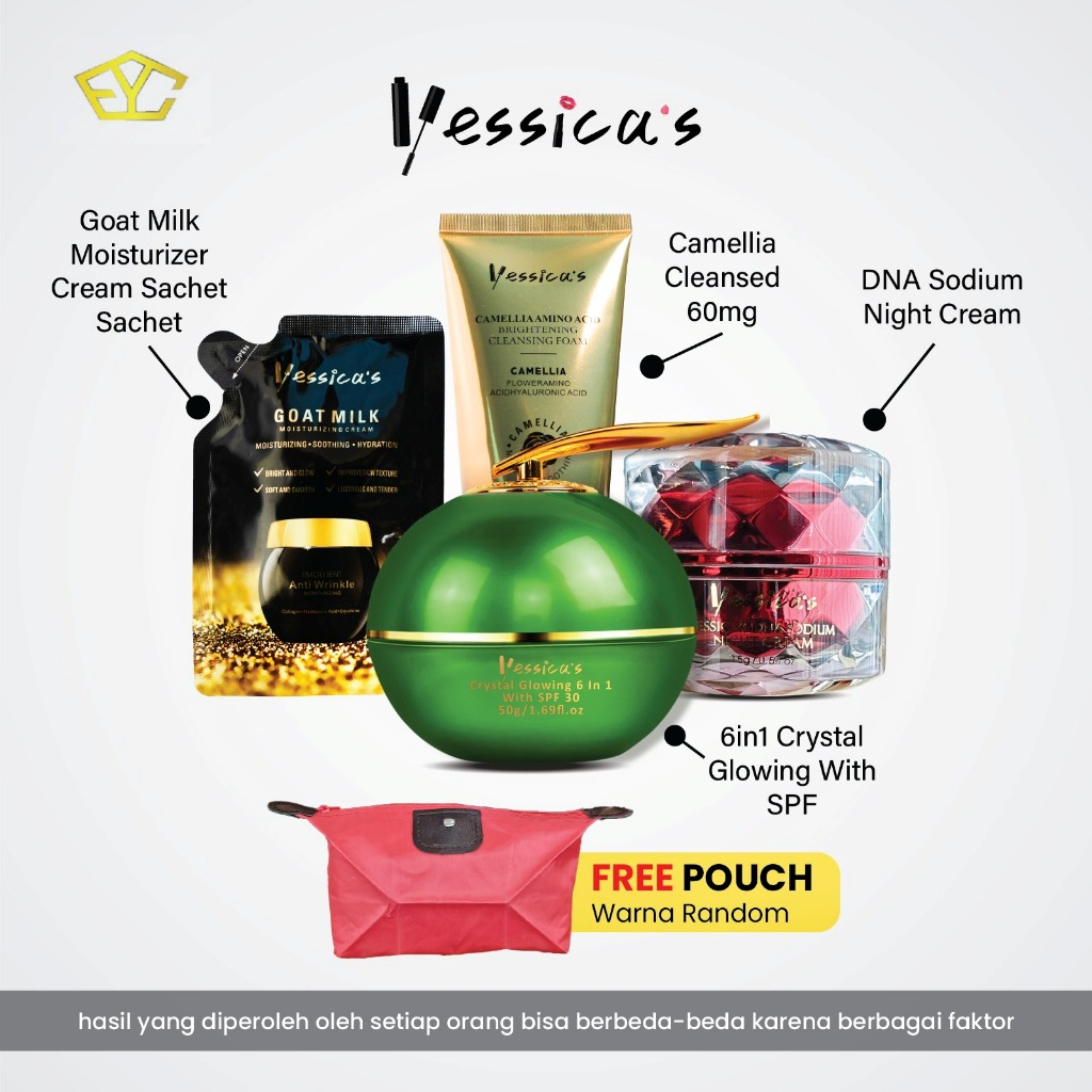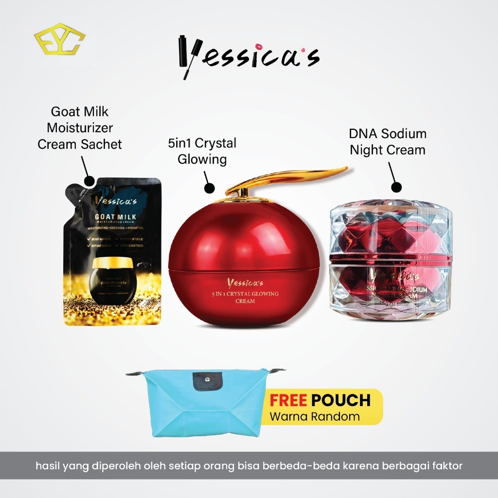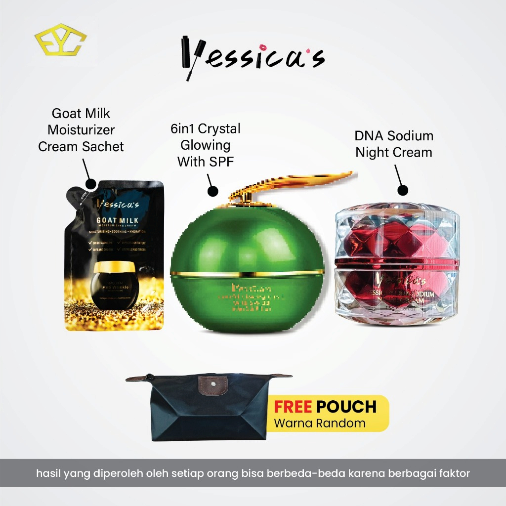 FYC - Yessica's Night Cream + 6IN1 Crystal Glowing Cream + Goat Milk Moisturizer Cream (Bonus 1 Pouch Random)