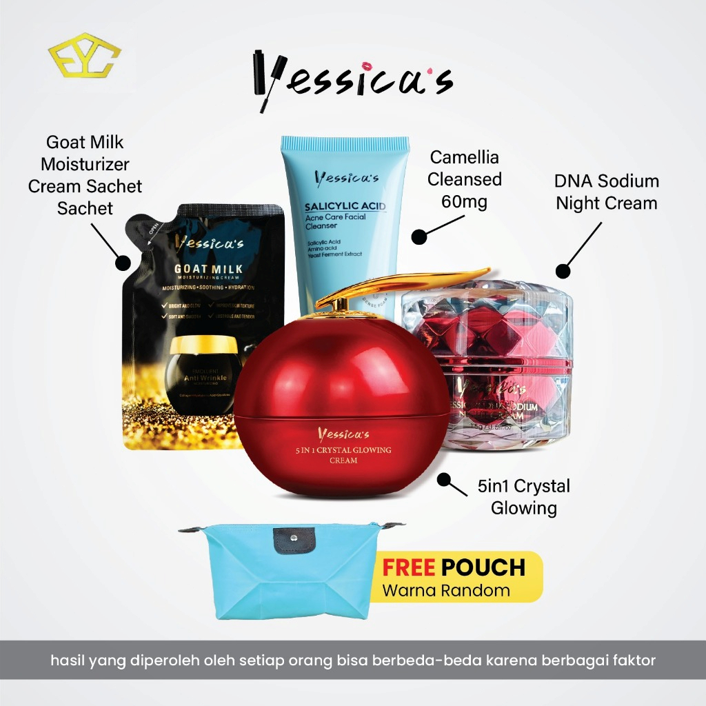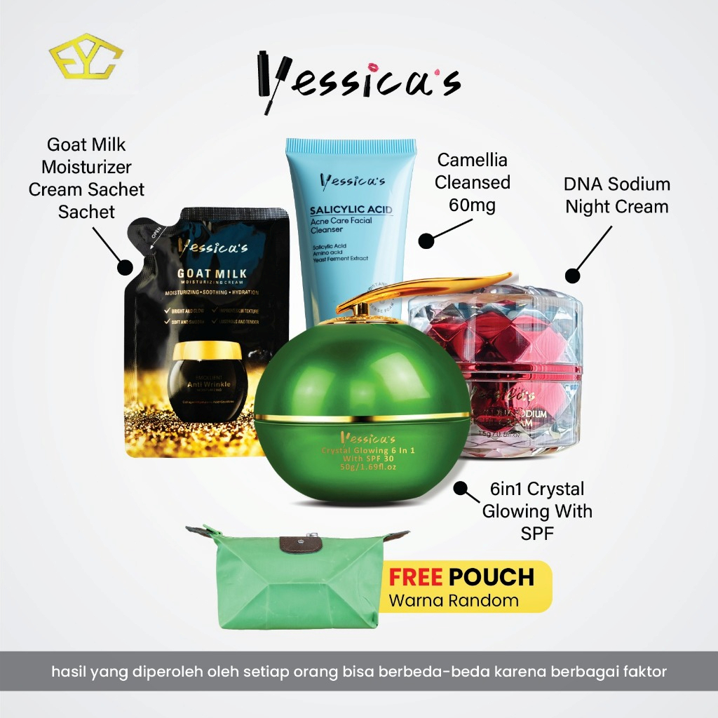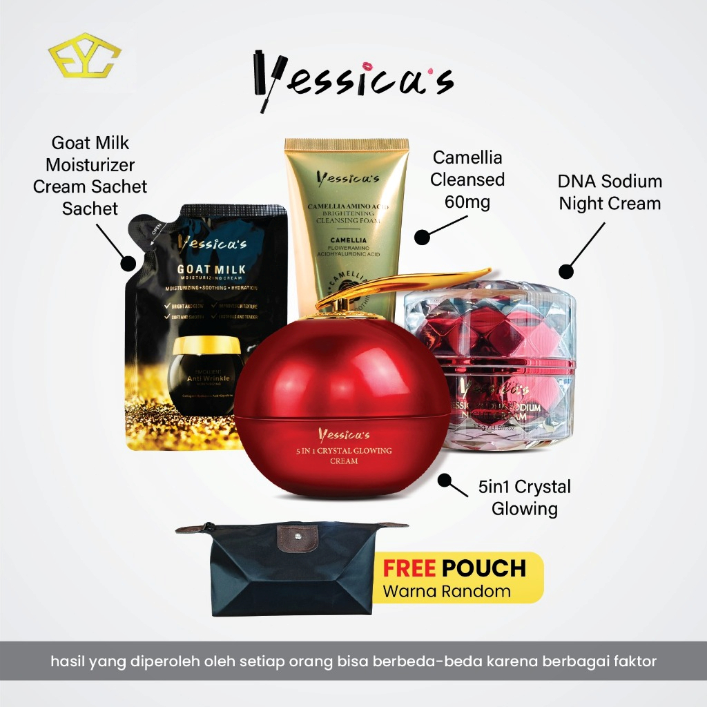 FYC - Yessica's Night Cream + 6IN1 Crystal Glowing Cream + Goat Milk Moisturizer Cream (Bonus 1 Pouch Random)