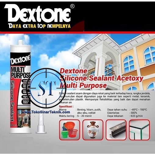 Lem Dextone Acetic Silicon Sealant Sealent Lem Kaca Silen Asam Multi Purpose LemTembak Akuarium Warna Clear / White / Black
