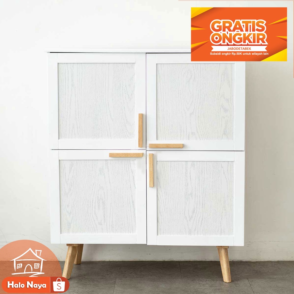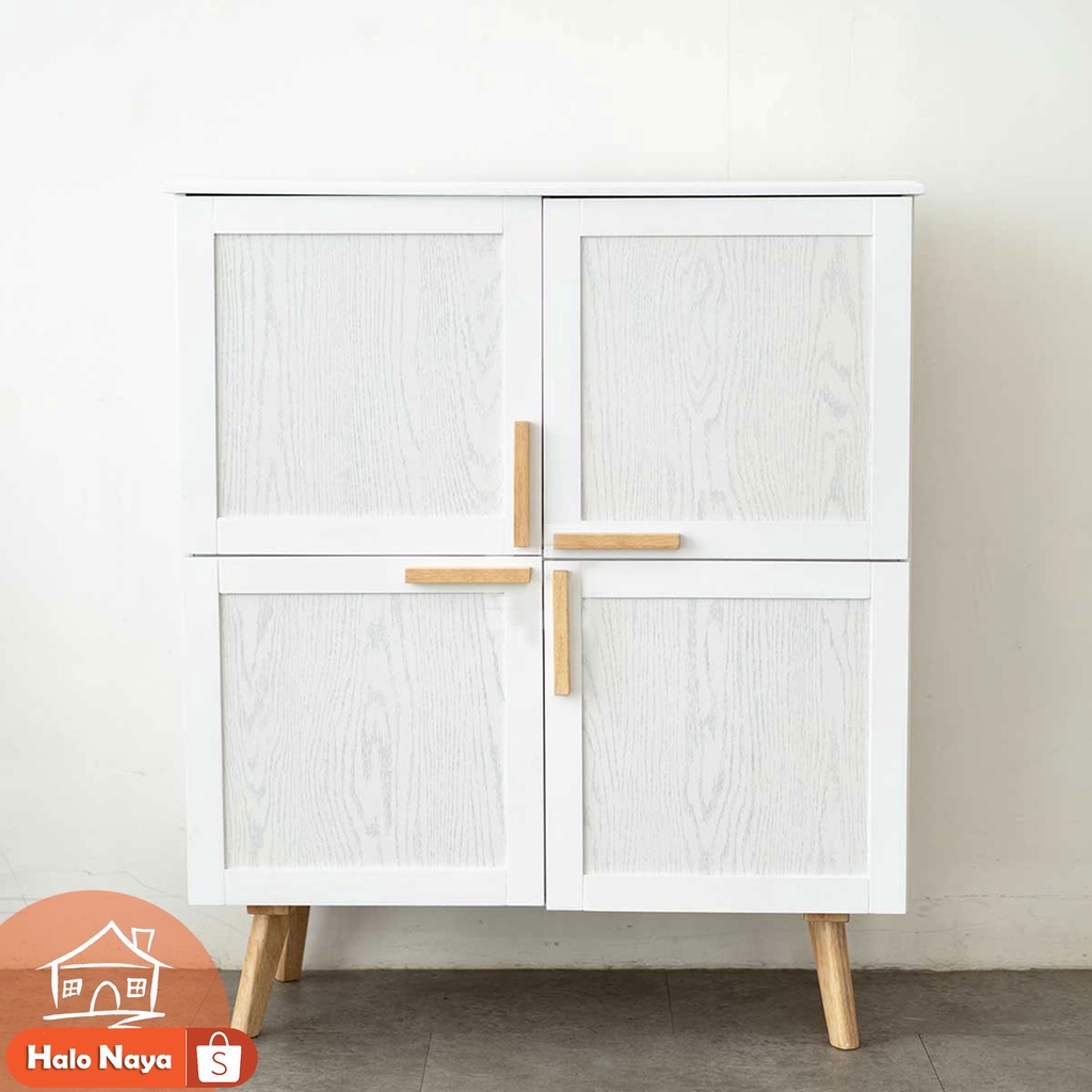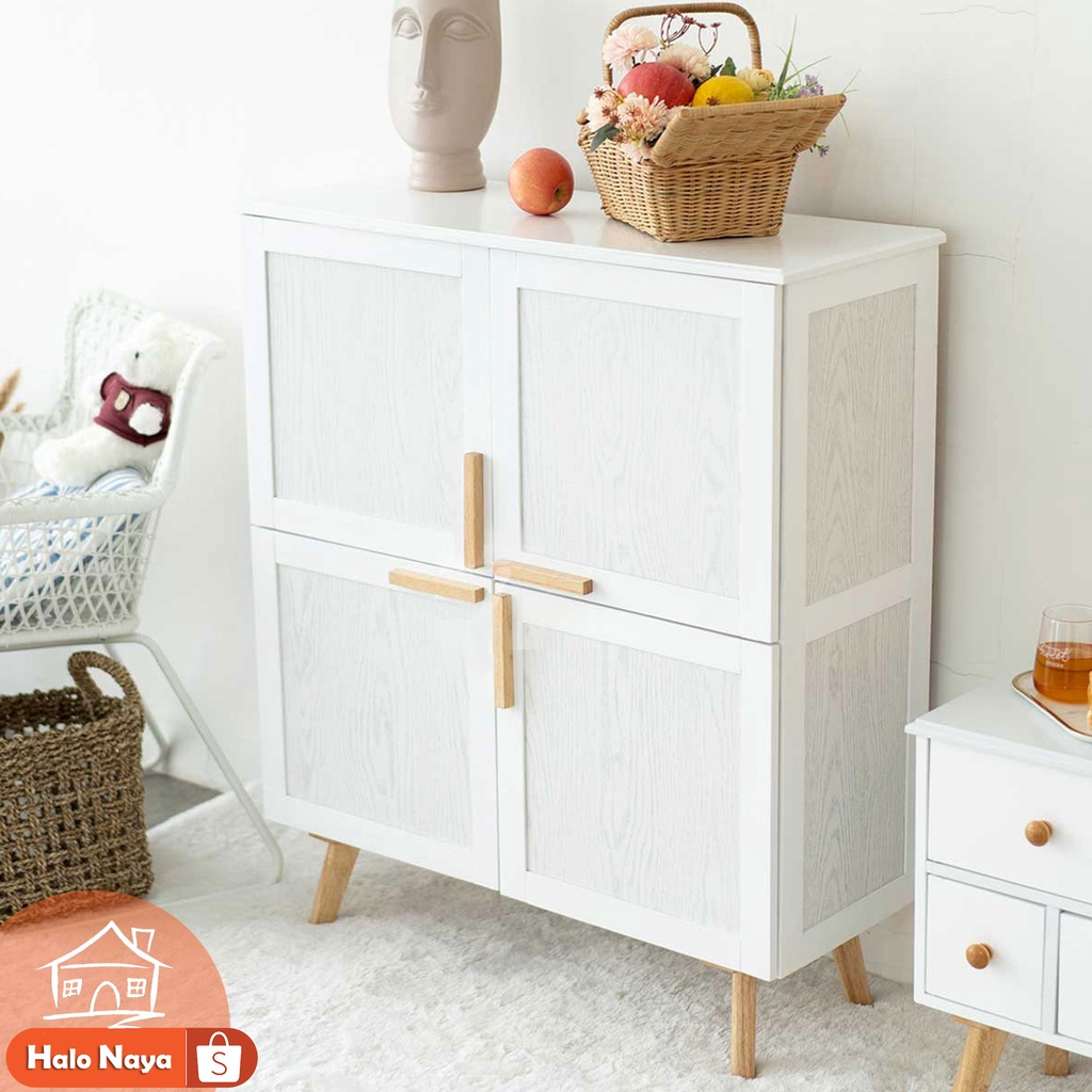 Lemari Kabinet Asthetic Putih Minimalis Scandinavian 4 Pintu HALO NAYA