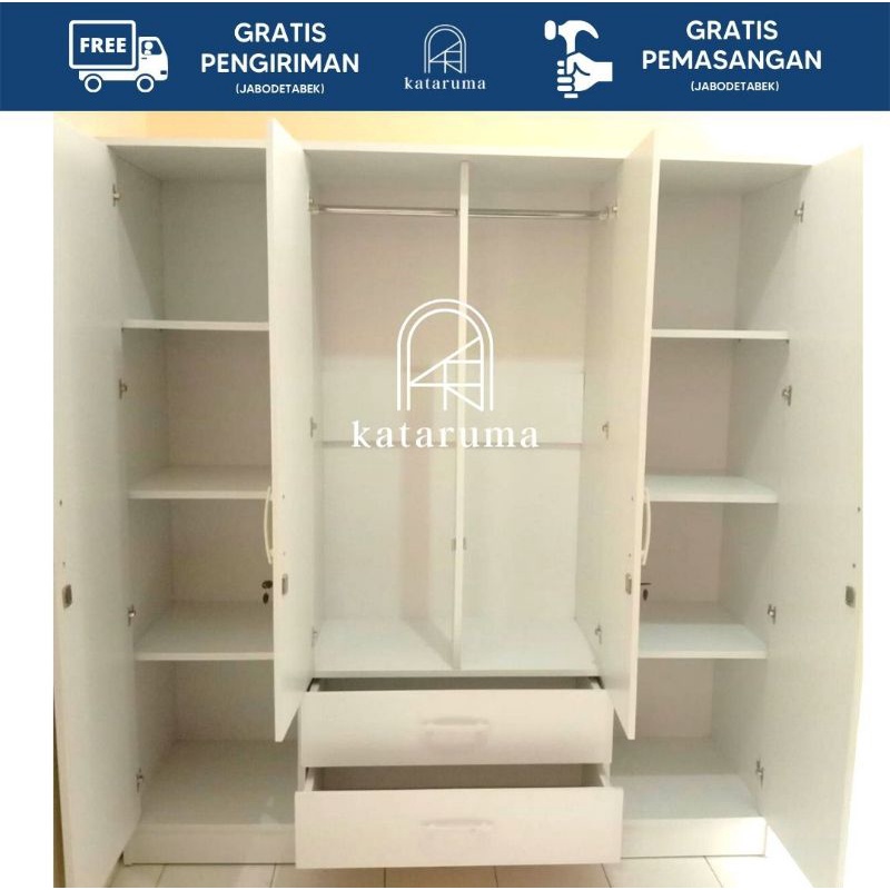 Lemari Minimalis 4 Pintu 2 Laci Swing Door