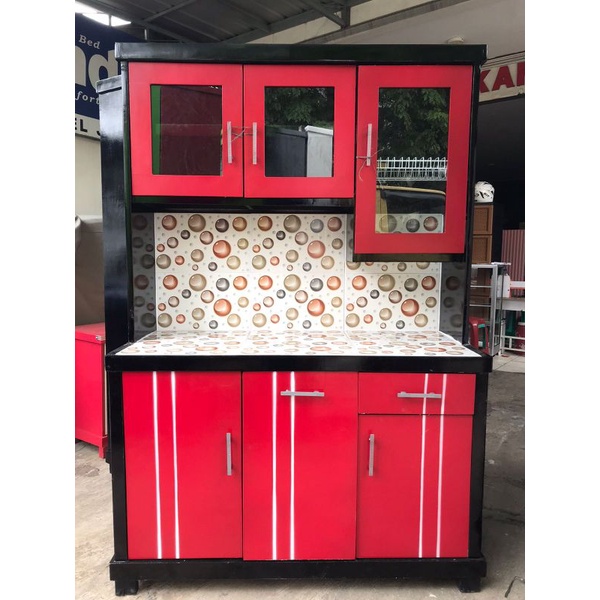 Lemari Piring 3 Pintu Merah Body Hitam Bahan Multiplex tebal Free ongkir kota serang