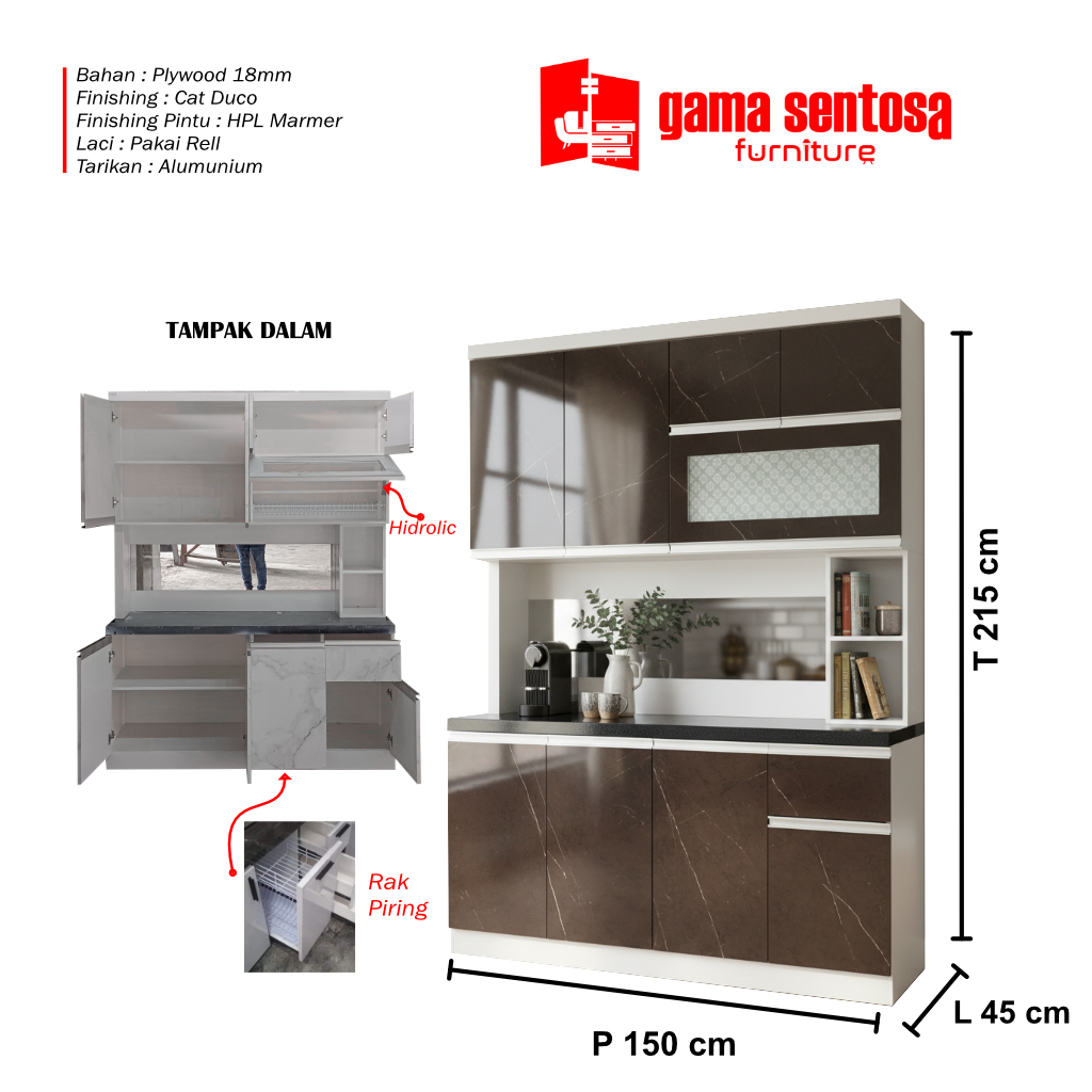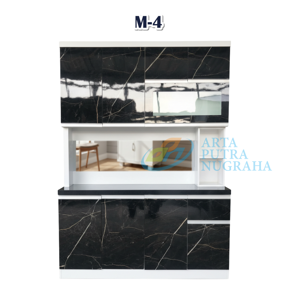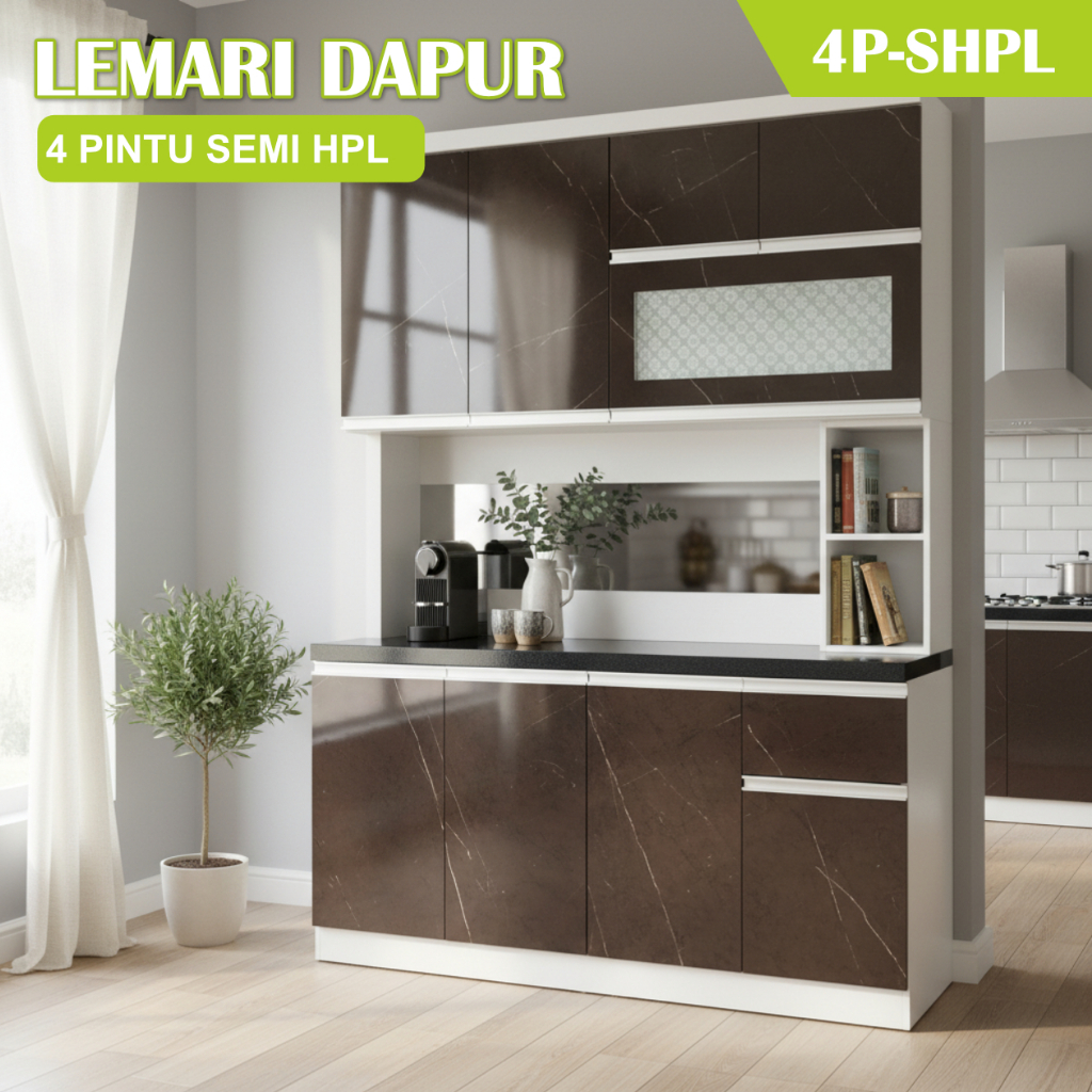 Lemari Dapur Marmer Semi HPL 4 pintu rak piring HPL 4 pintu