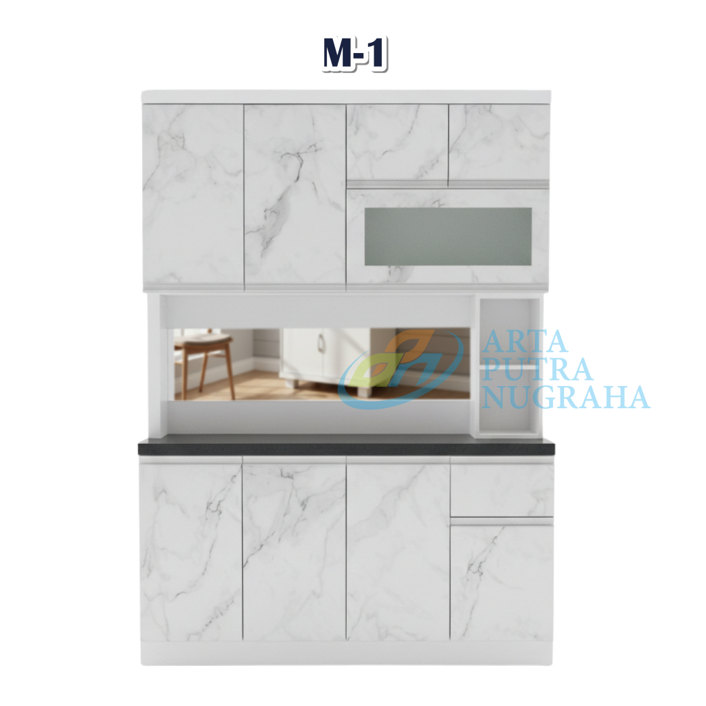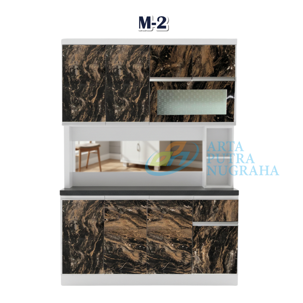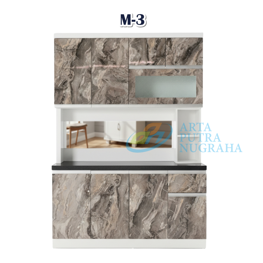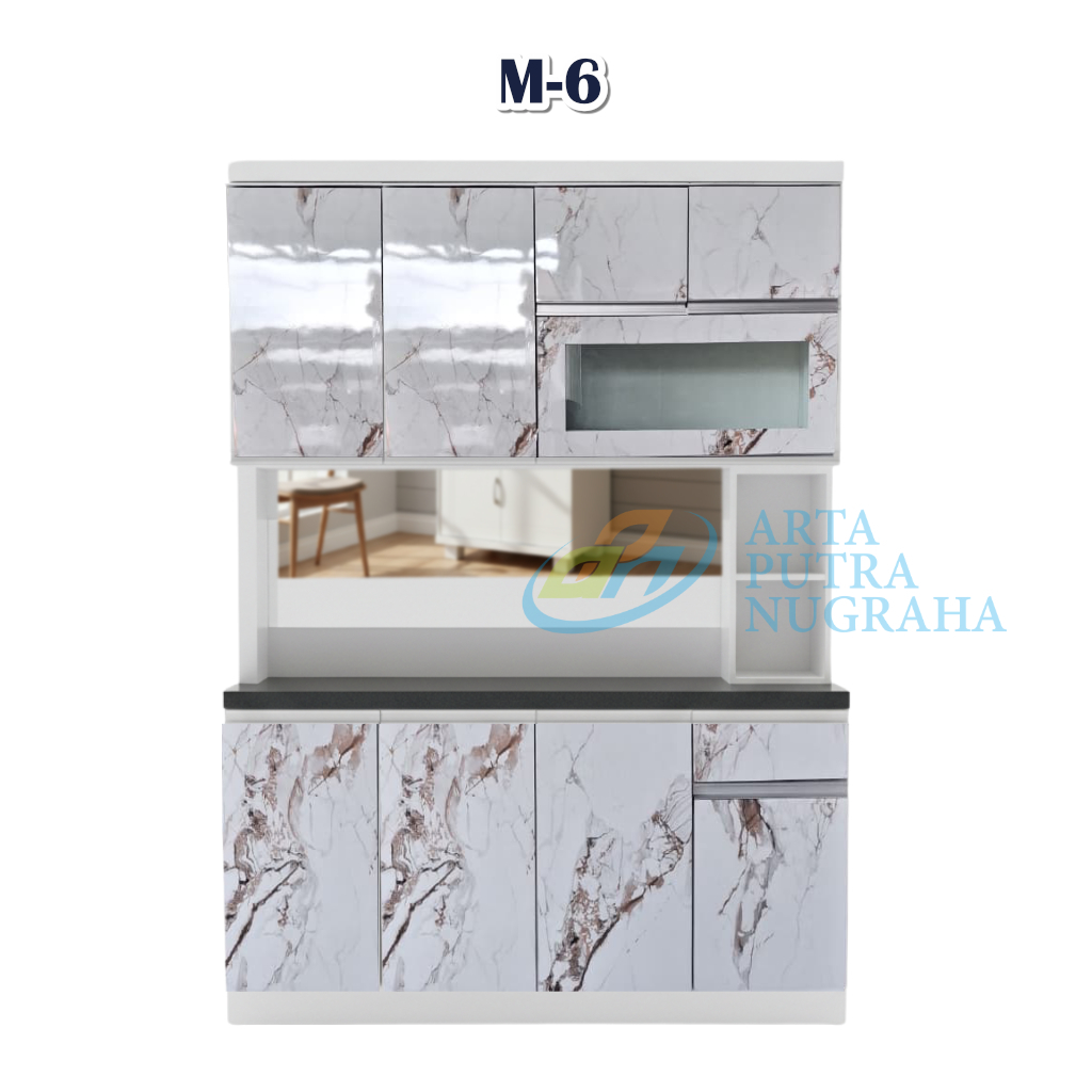 Lemari Dapur Marmer Semi HPL 4 pintu rak piring HPL 4 pintu