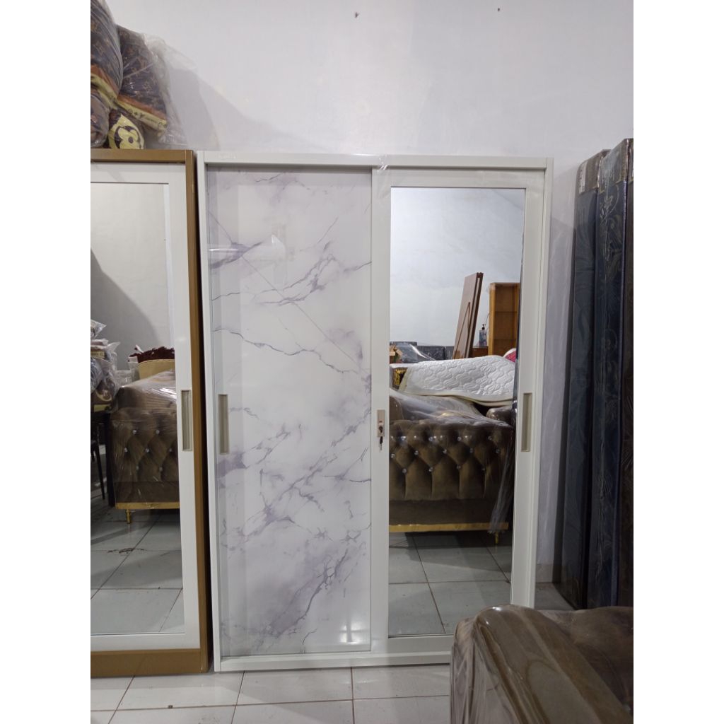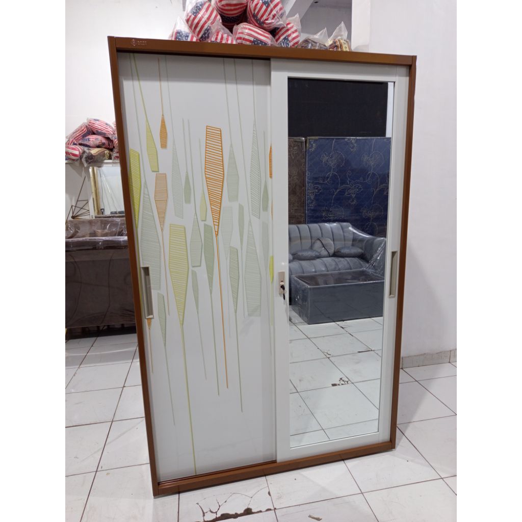 Lemari besi sliding 120cm /lemari pakaian besi/lemari kaca besi