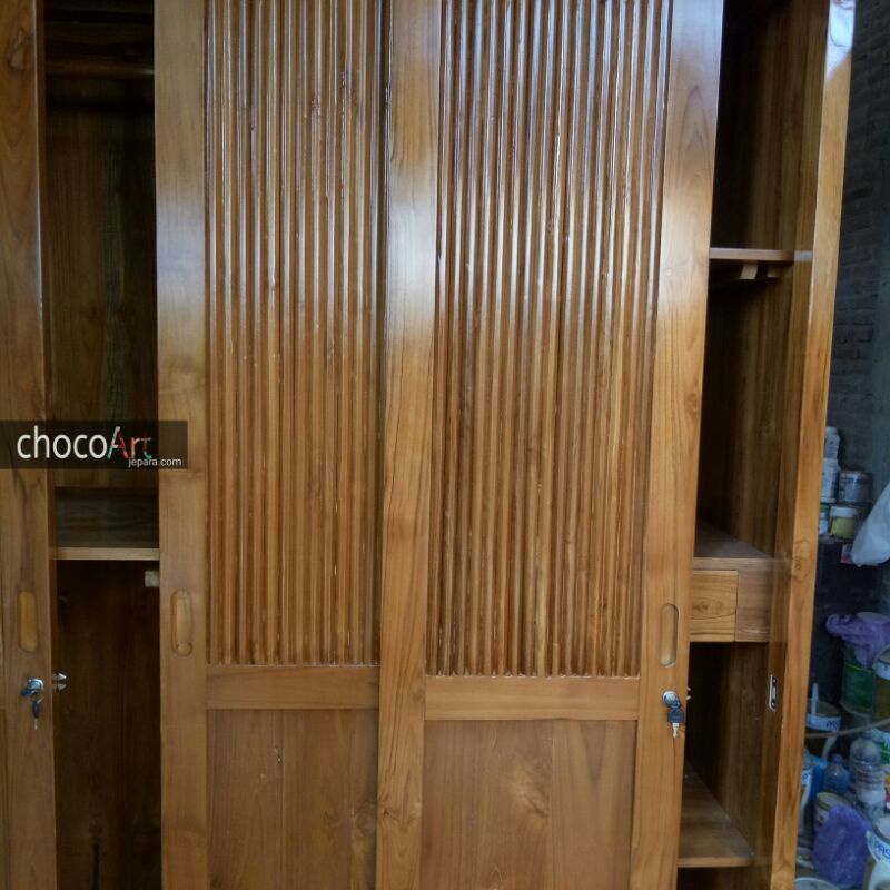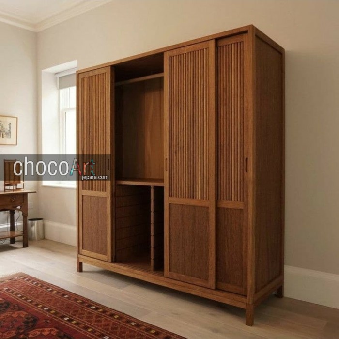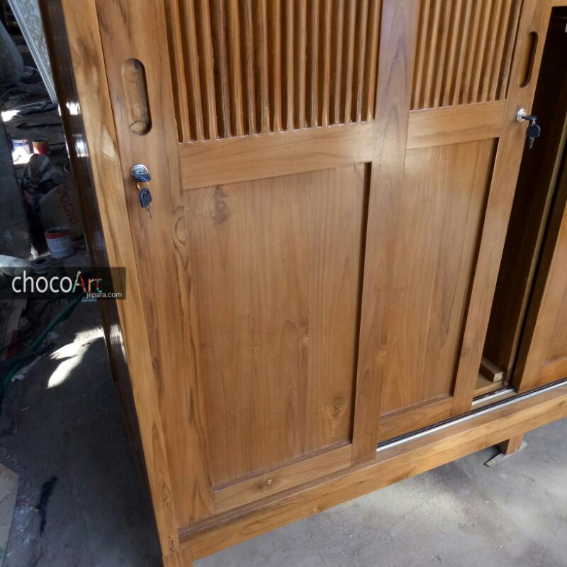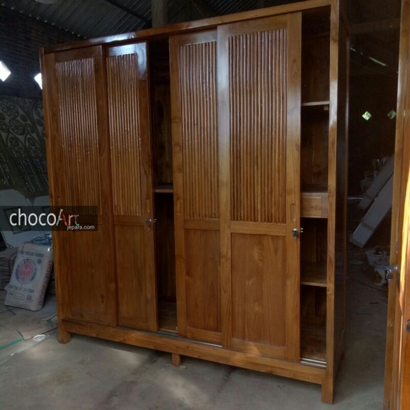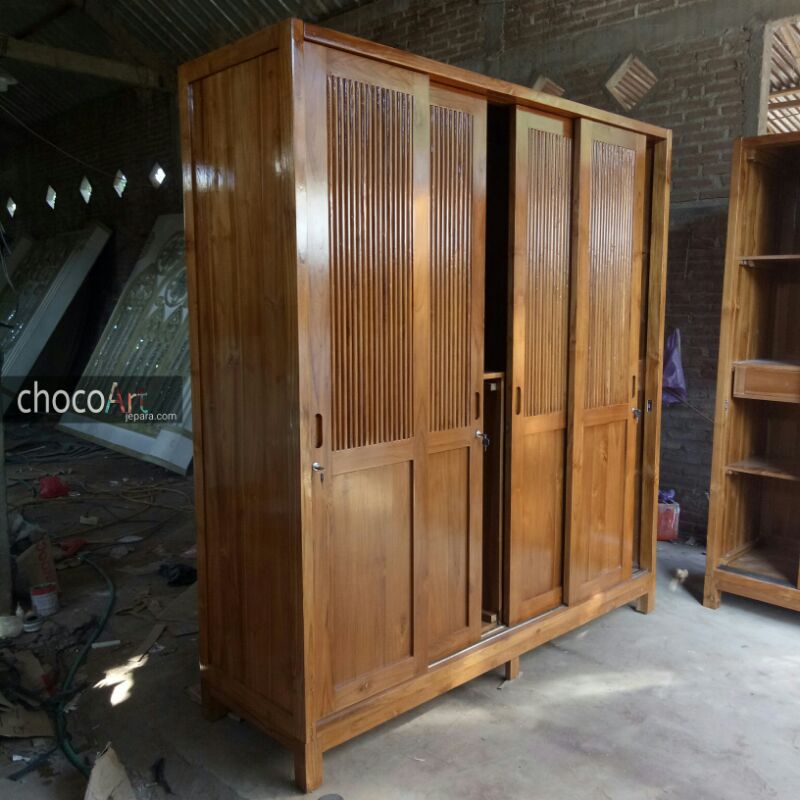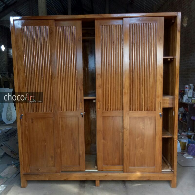 Lemari jati minimalis / Lemari Pakaian Kayu jati 4 pintu by chocoart jepara / lemari jati mewah