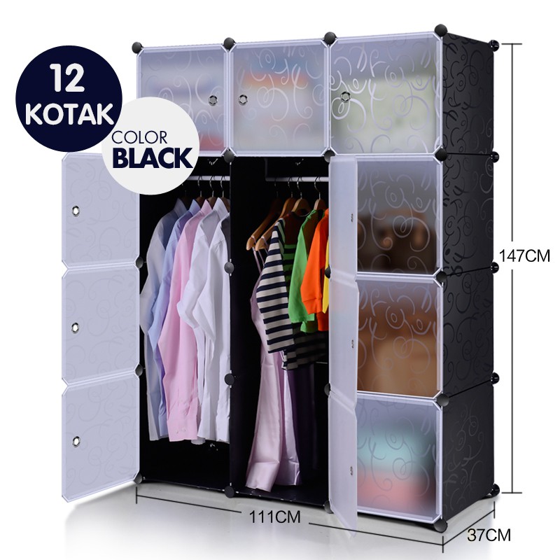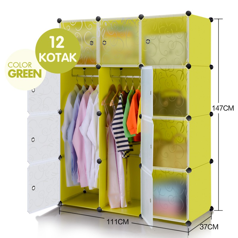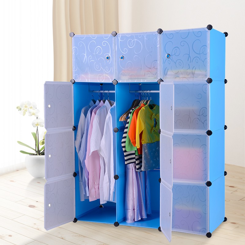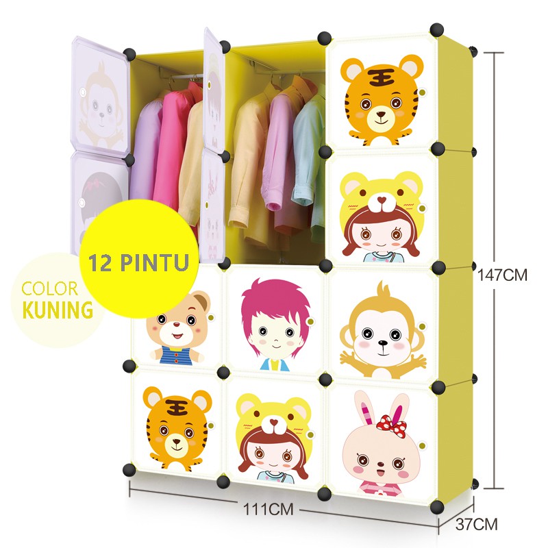 Lemari pakaian lemari plastik rak serbaguna susun lemari baju anak bayi 12 pintu