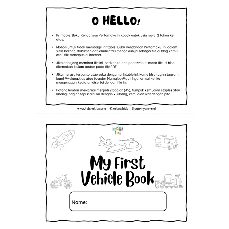 Lembar Mewarnai Buku Kendaraan Printable Worksheet Aktivitas Coloring Anak PAUD TK Kindergarten PDF