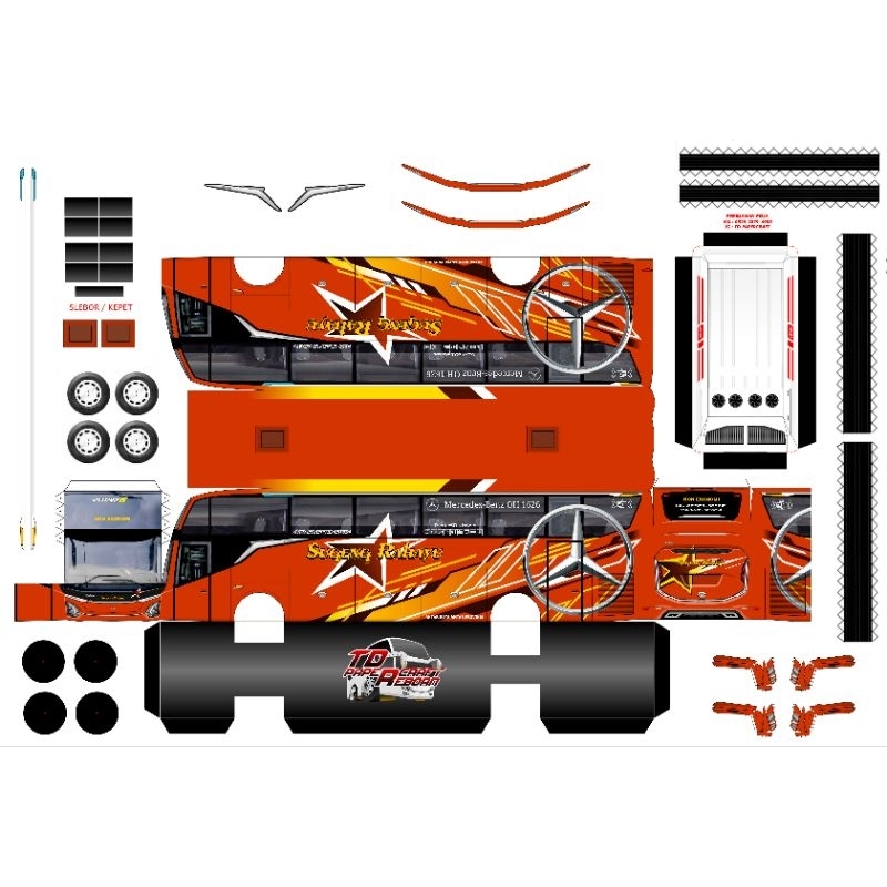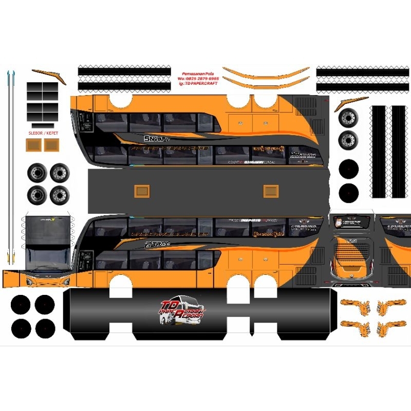 Lembaran Pola Papercraft Bus JETBUS 5 Skala 1:50