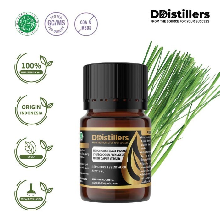 Lemongrass East Indian / Sereh Dapur Essential Oil Pure100%, 2-10ML GS