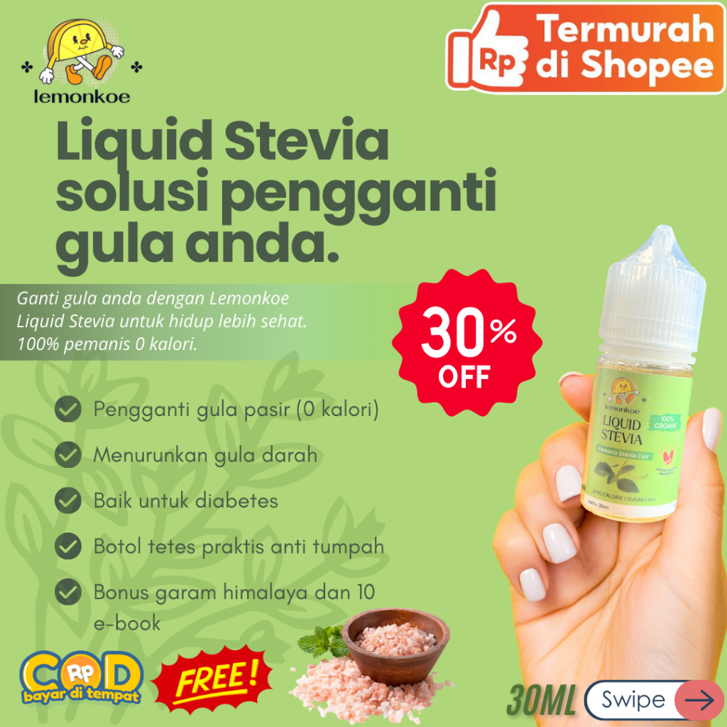 Lemonkoe Liquid Stevia Tetes Cair Pemanis Alami 30ml baik untuk diabetes diet pengganti gula COD FREE garam himalaya