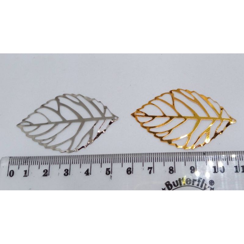 Lempengan Daun 5cm Gold & Silver Chram Daun Besi Lempengan Daun Besi Ornamen Lempengan Variasi Daun Hias Bahan Craft