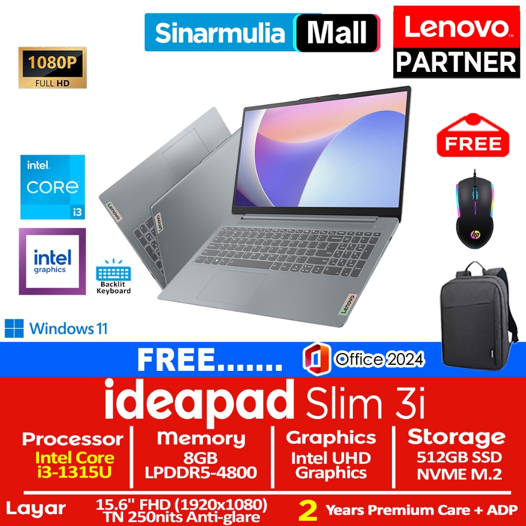 Lenovo Ideapad Slim 3i i3-1315U 512GB SSD 8GB FHD 15.6" Win11+OHS