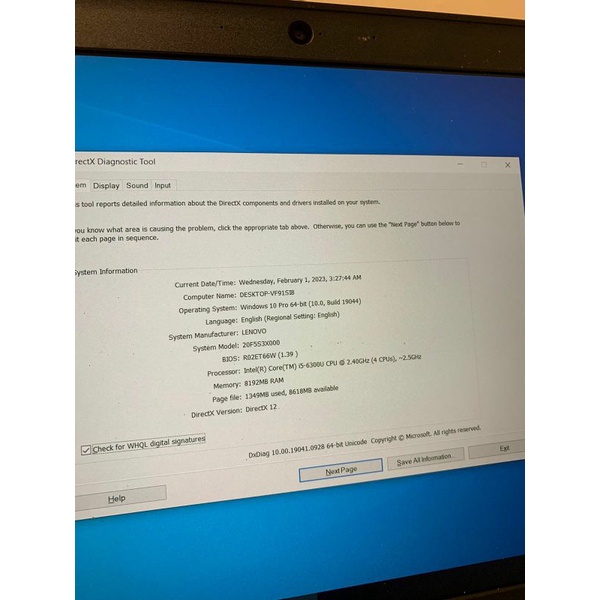 Lenovo Thinkpad x260 Intel Core i5 Gen6 Ram 8GB SSD 128GB WIN10