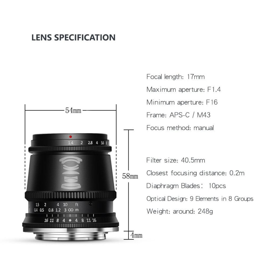 Lensa TTartisan 17mm F1.4 for Canon M / Sony E / Fujifilm X / Nikon Z / M4/3 Panasonic Olympus / Leica L APS-C Mount Garansi Resmi