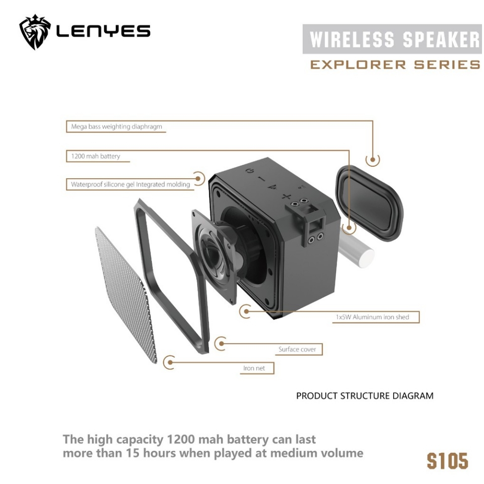 LENYES SPEAKER BLUETOOTH TWS V5.0 5WATT SHOCKPROOF AND WATERPROOF IPX7 HIFI STEREO S105