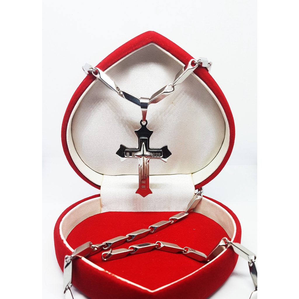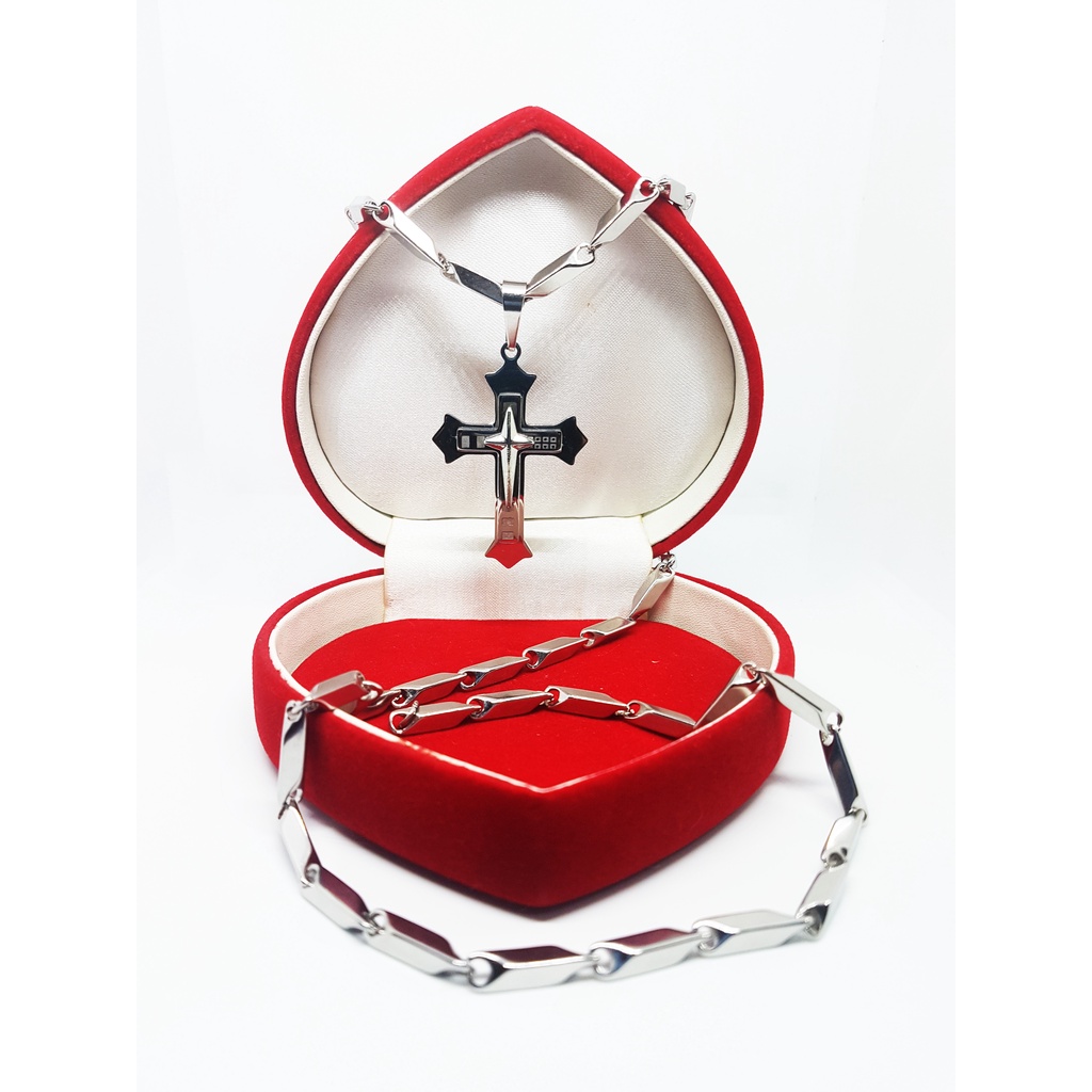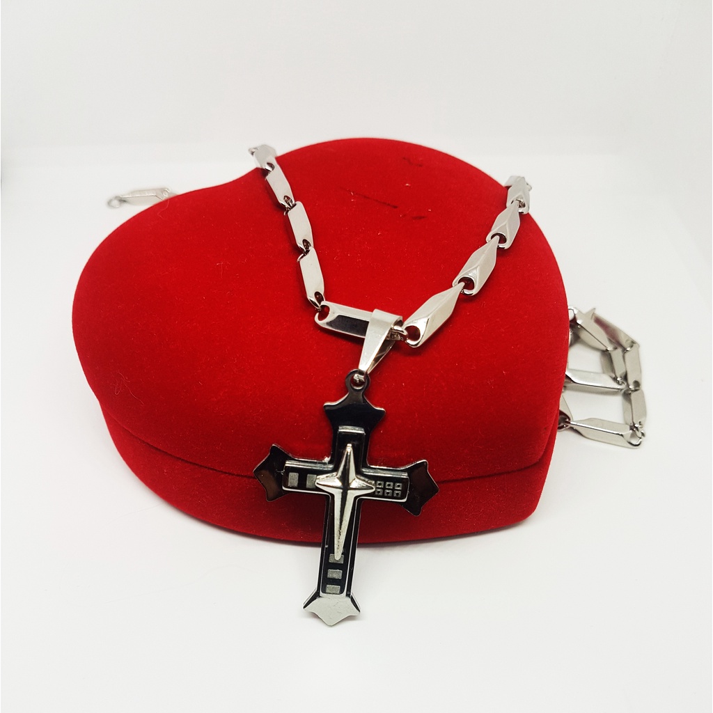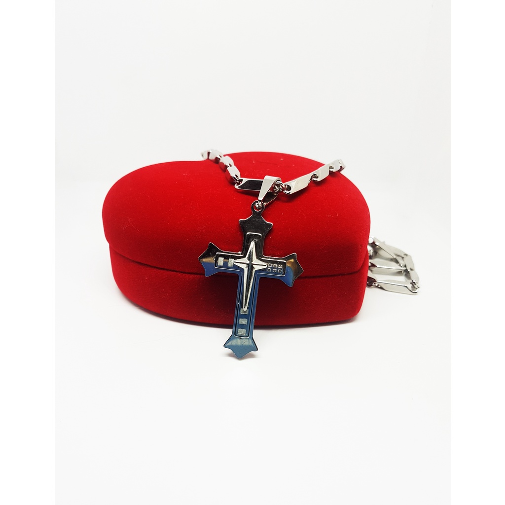 Leontin Salib 3 susun motif cahaya, besi putih asli ambon