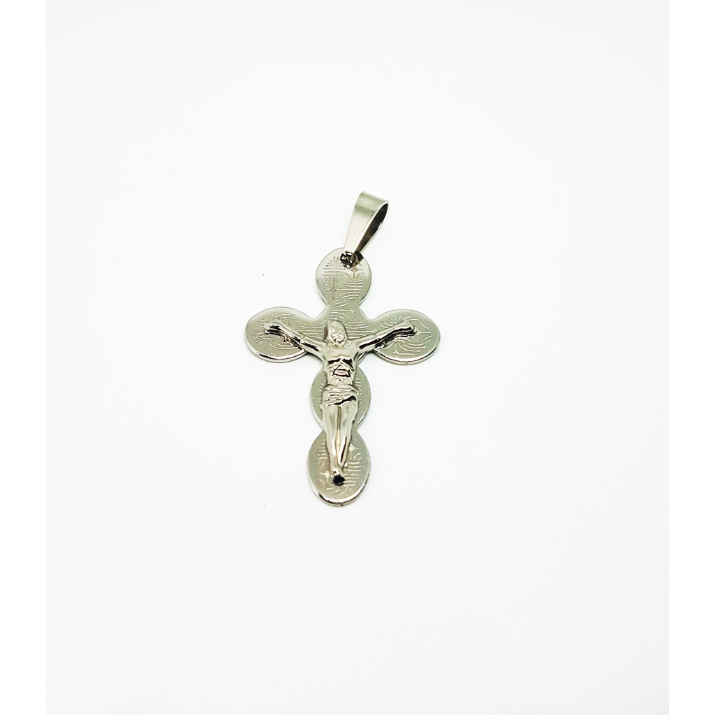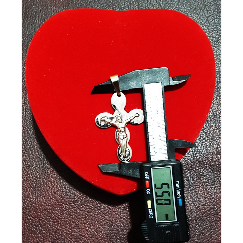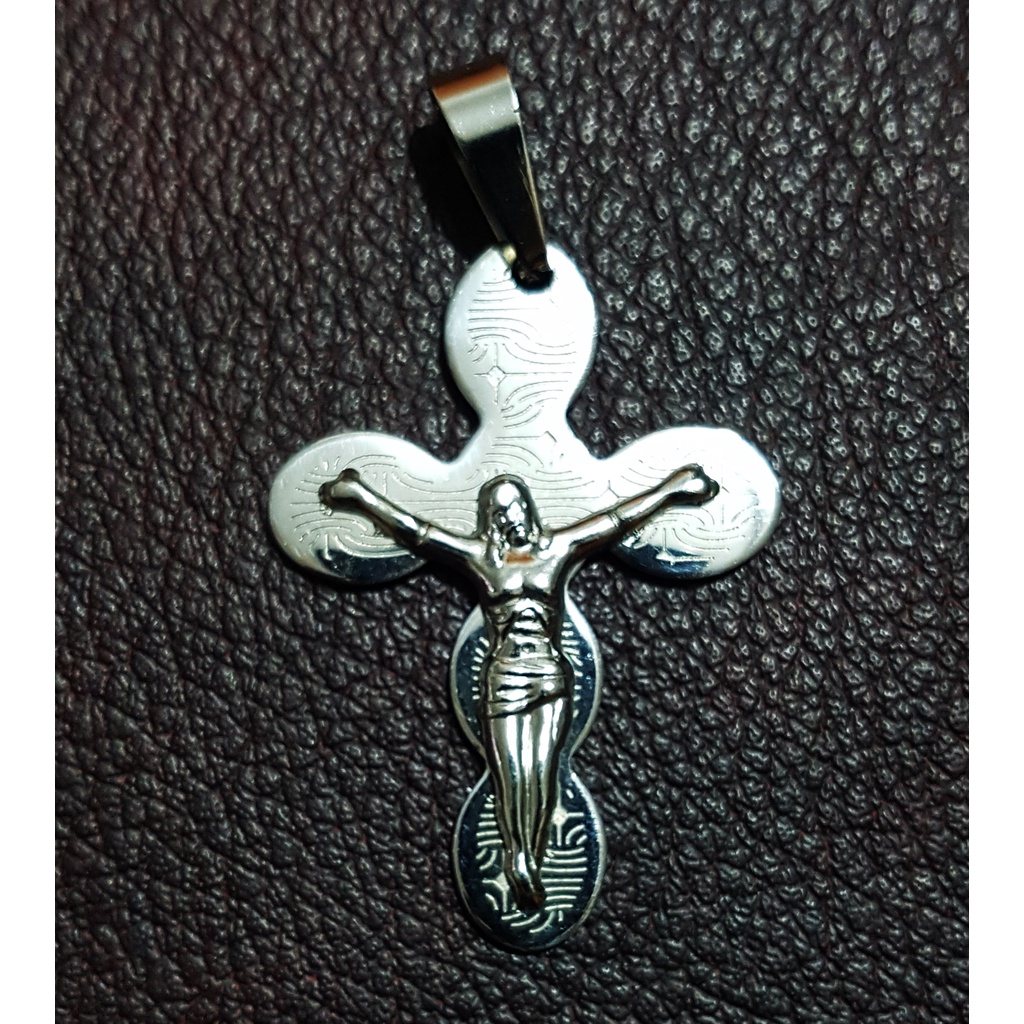 Leontin Salib Motiv Bulat bulat dengan orang, besi putih asli ambon, selamnya tidak berkarat