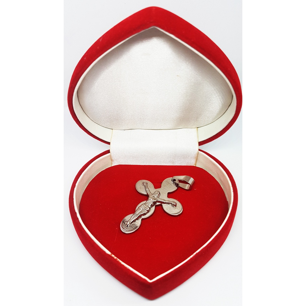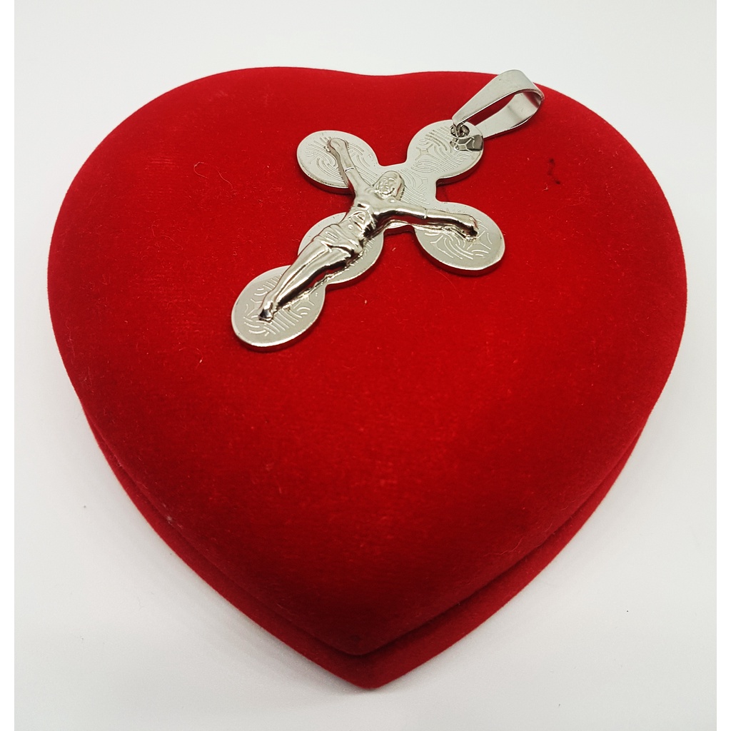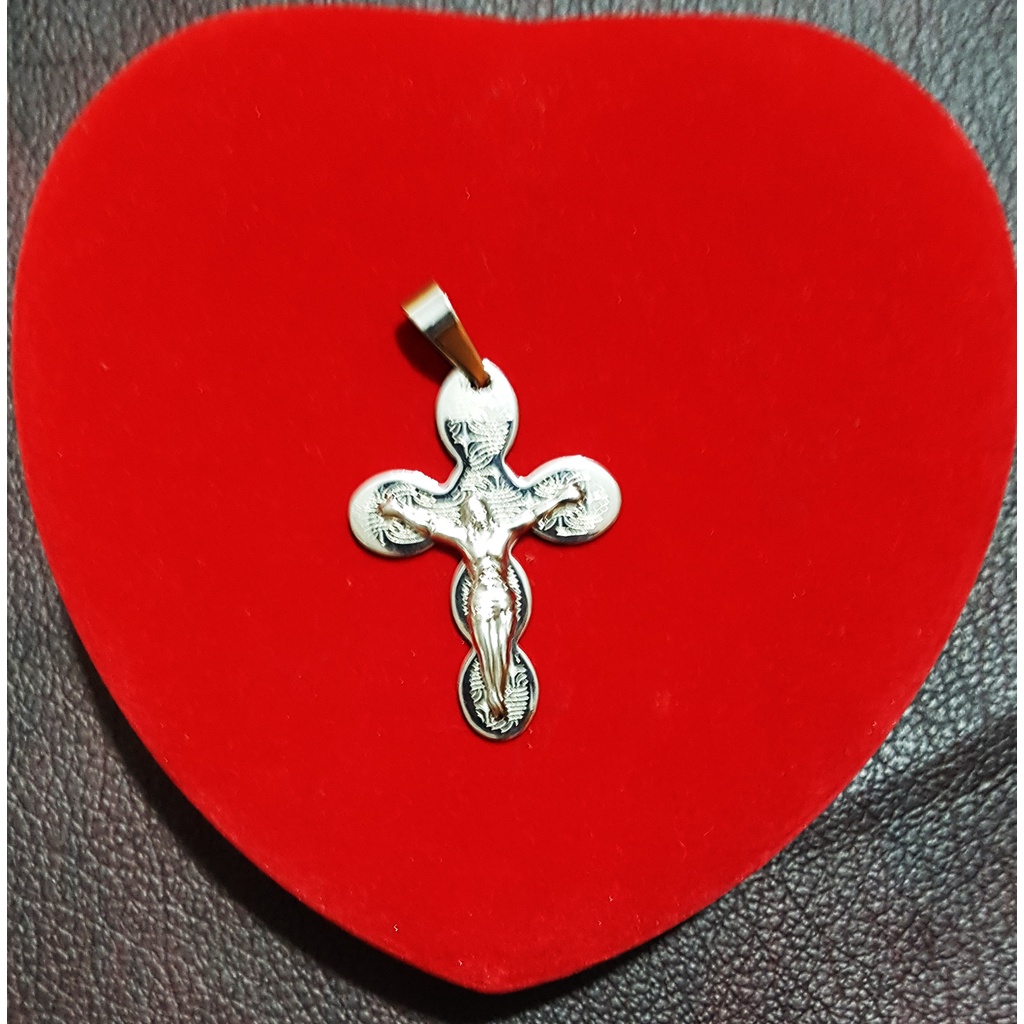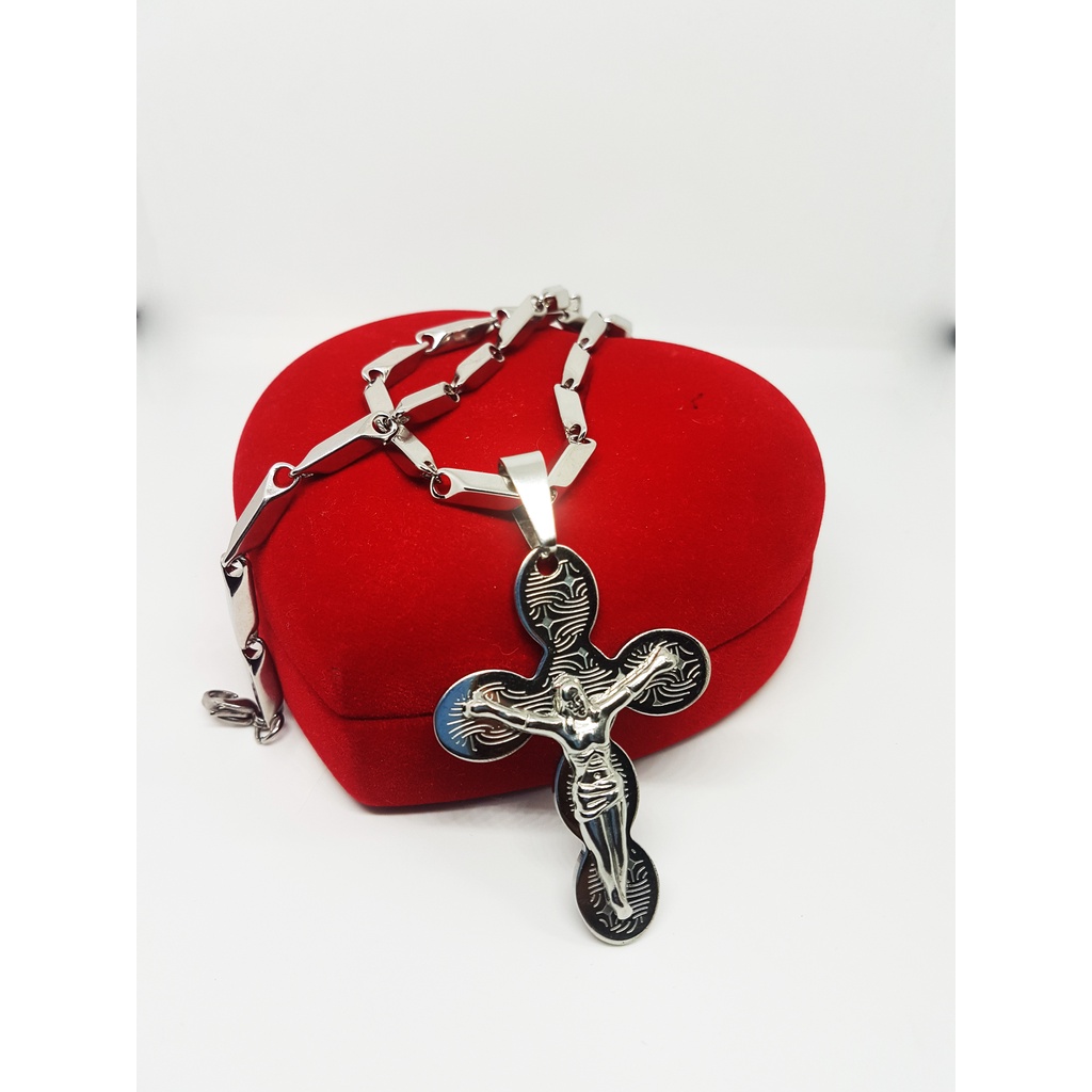 Leontin Salib Motiv Bulat bulat dengan orang, besi putih asli ambon, selamnya tidak berkarat