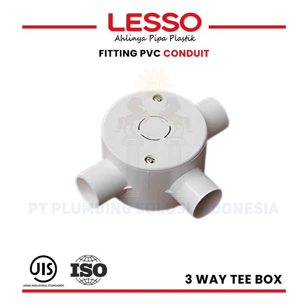 Lesso Fitting PVC Conduit Cabang 3 / Tee Dus Cabang 3 / 3 Way Tee Box 1/2 Inch / 20 mm