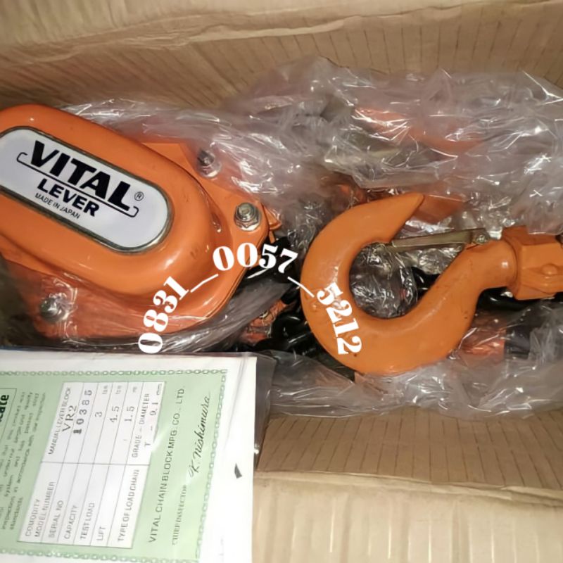 Lever Block 3 Ton x 1,5 Meter V Lever VITAL Chain Lever Block Hoist Made in Japan