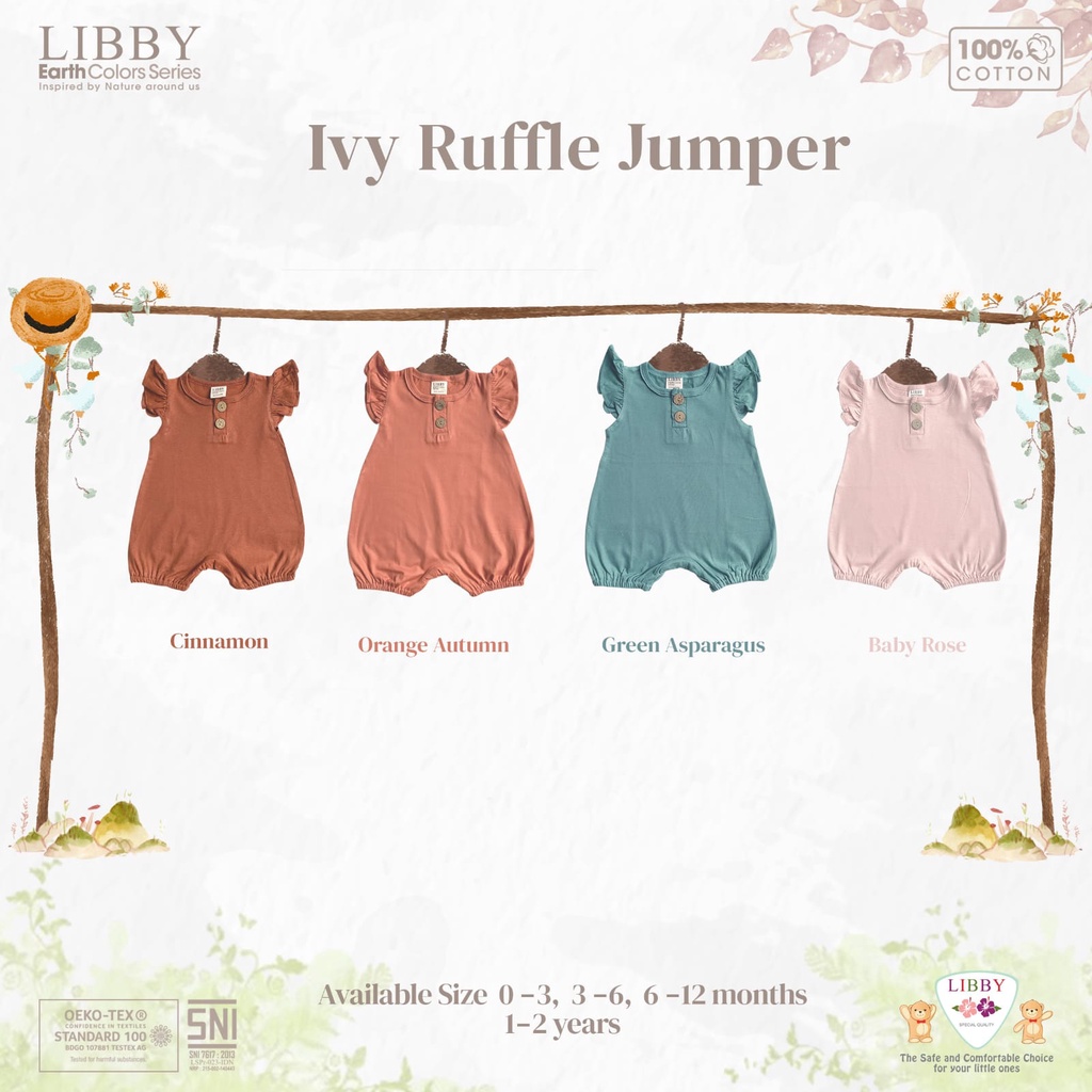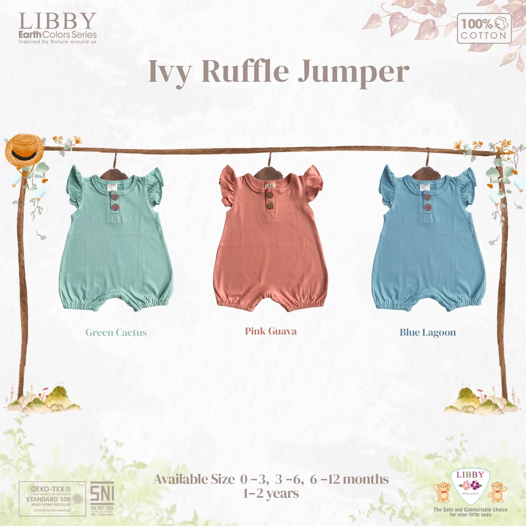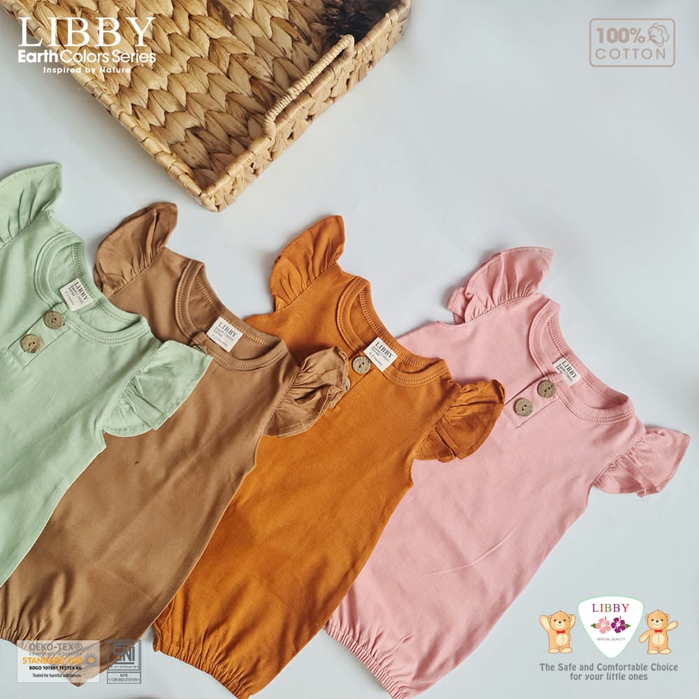 Libby Ivy Ruffle Earth Color Series Jumper Segi 4 Cotton Earth Colour 1-2 Tahun / Libby Baby / Pakaian Bayi / Jumper Libby / Jumper Bayi / Perlengkapan Bayi Baru Lahir dan Anak / Baju Bayi Baru Lahir dan Anak Murah Shade Of Pink