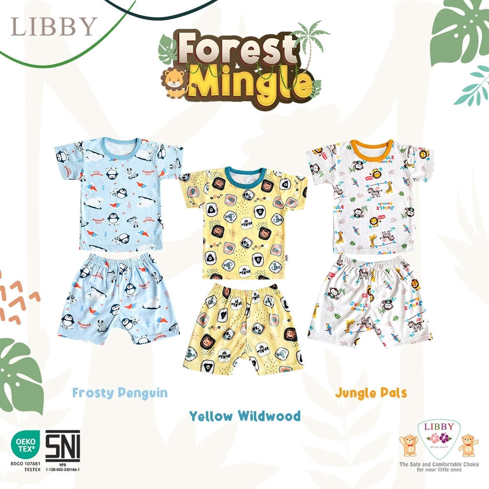 Libby / Miyo. / Little Owl - 3 Pcs Setelan Pendek Bayi Baju Pendek Celana Pendek S M L (3-18 Bulan)