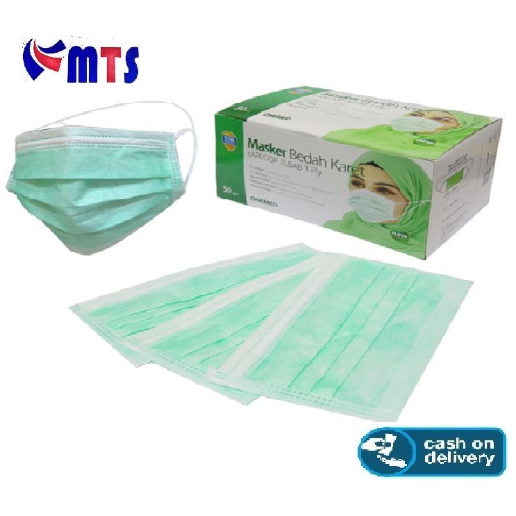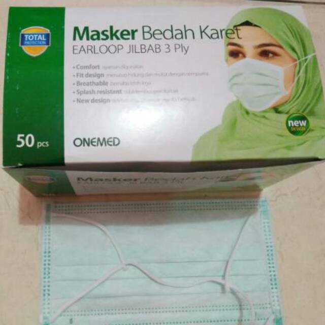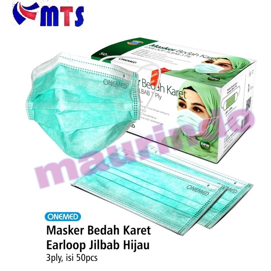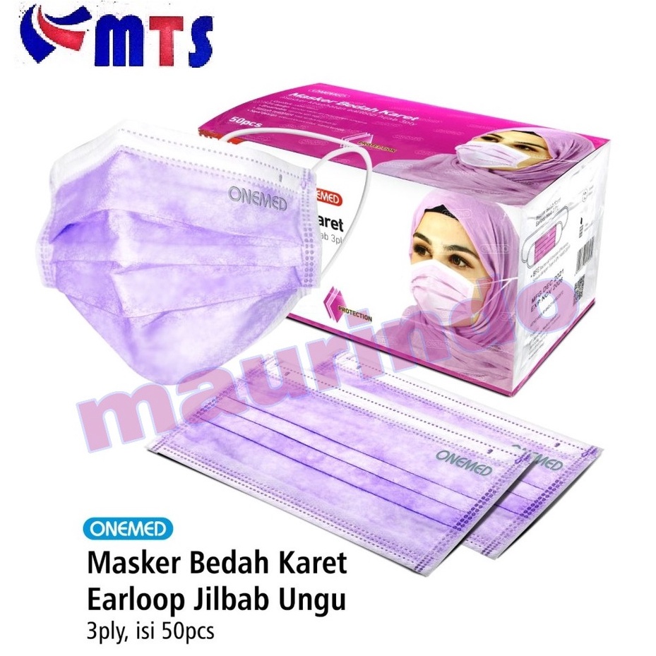 COD - Onemed Masker Bedah Jilbab HIJAU UNGU BIRU PUTIH Masker Hijab Karet Headloop Box 50pcs
