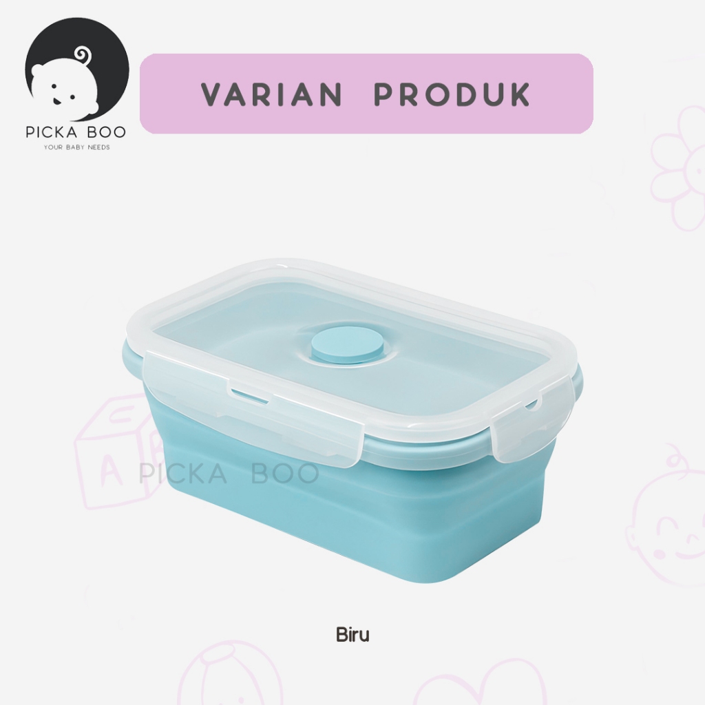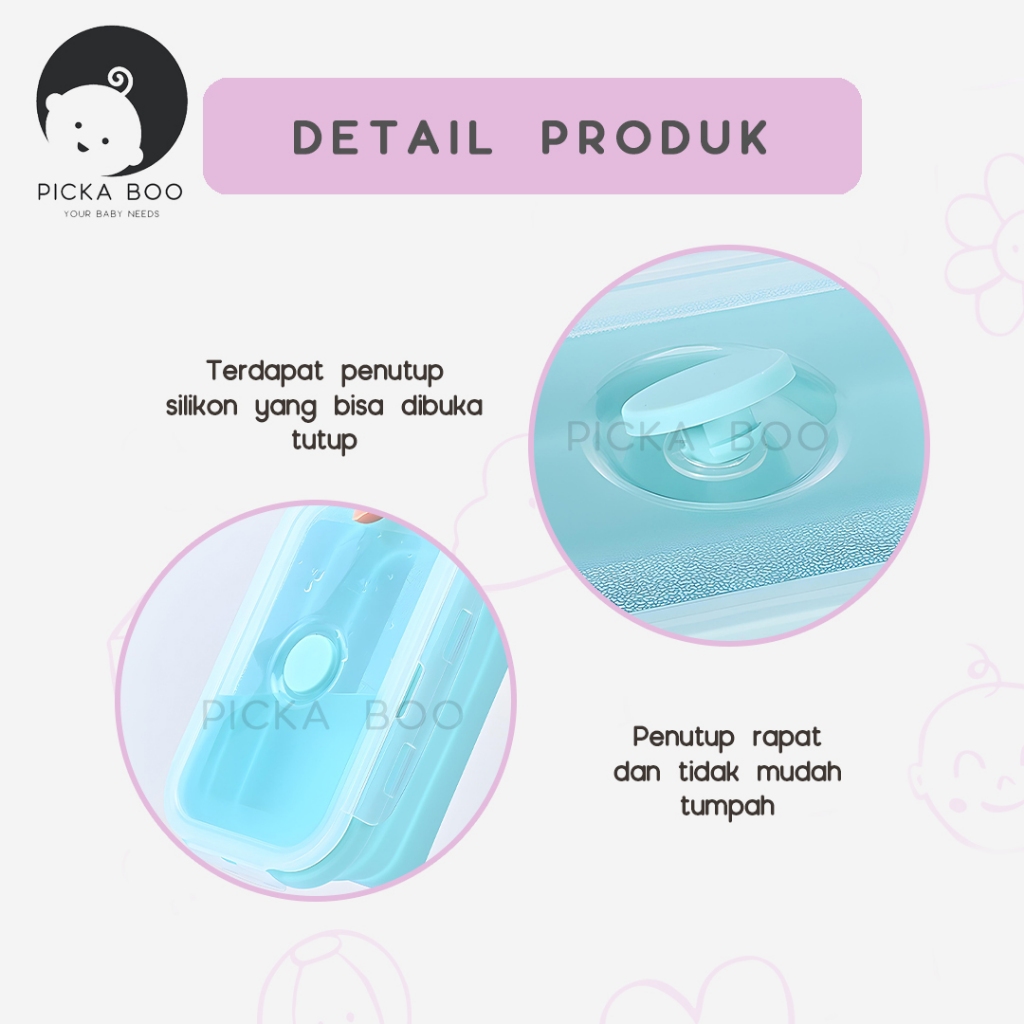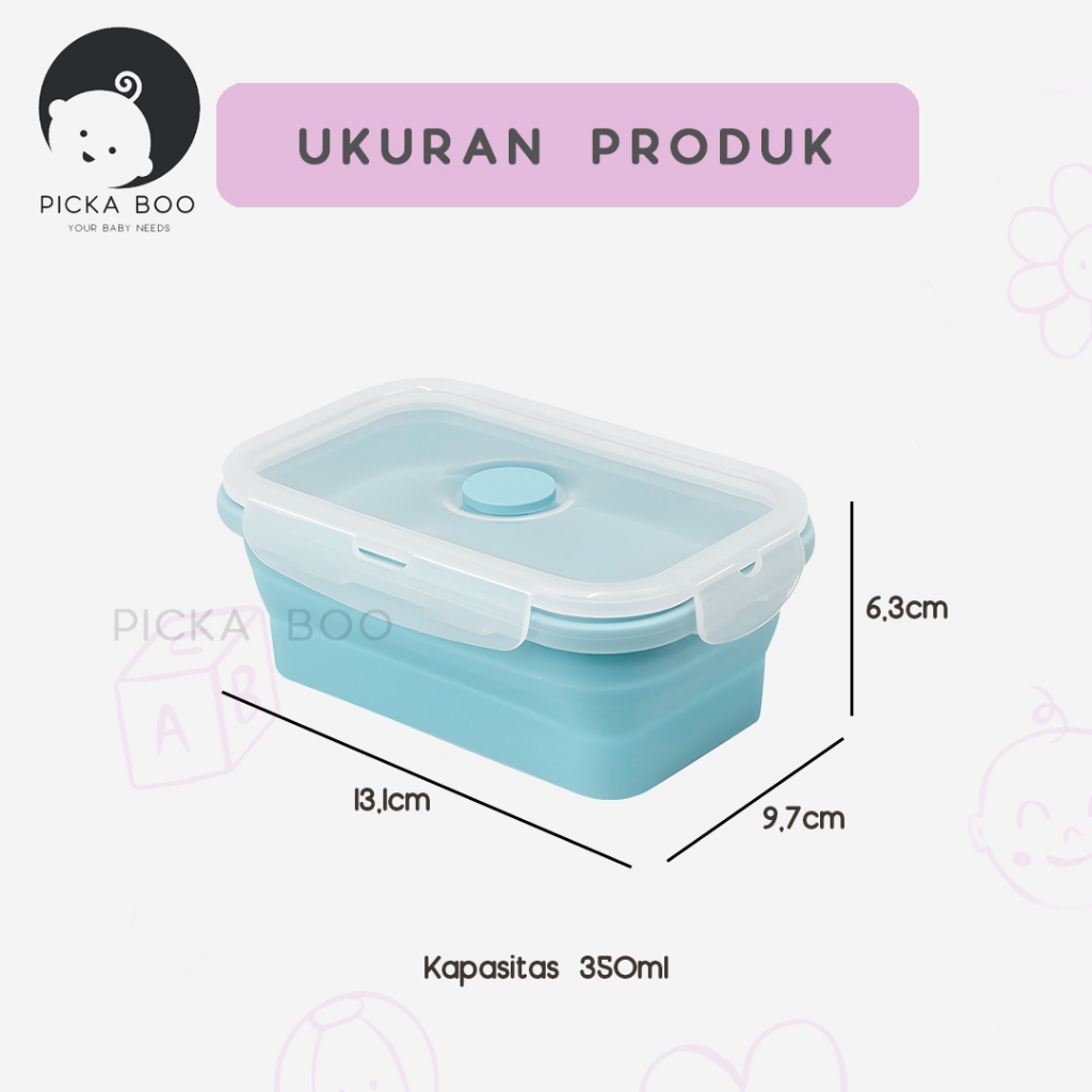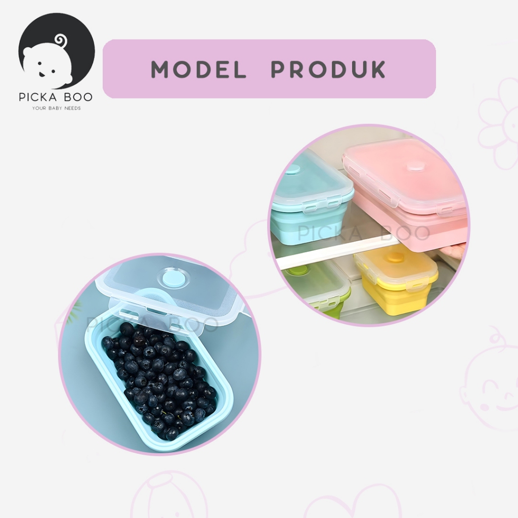 PICKA BOO Kotak MPASI Silikon Portabel Kotak Makanan Silikon Food Storage Kotak Penyimpanan Kontainer Makanan Bekal MPASI Bayi Bahan Silikon Ukuran 350 ml ,500 ml dan 800 ml cocok untuk Souvenir