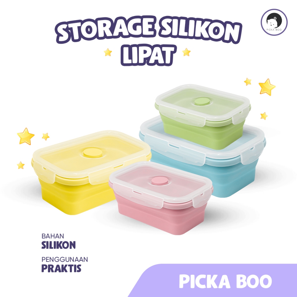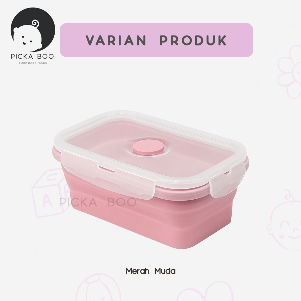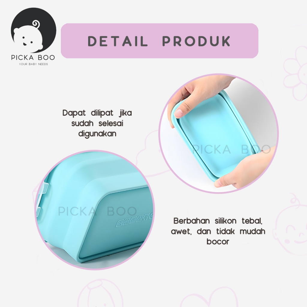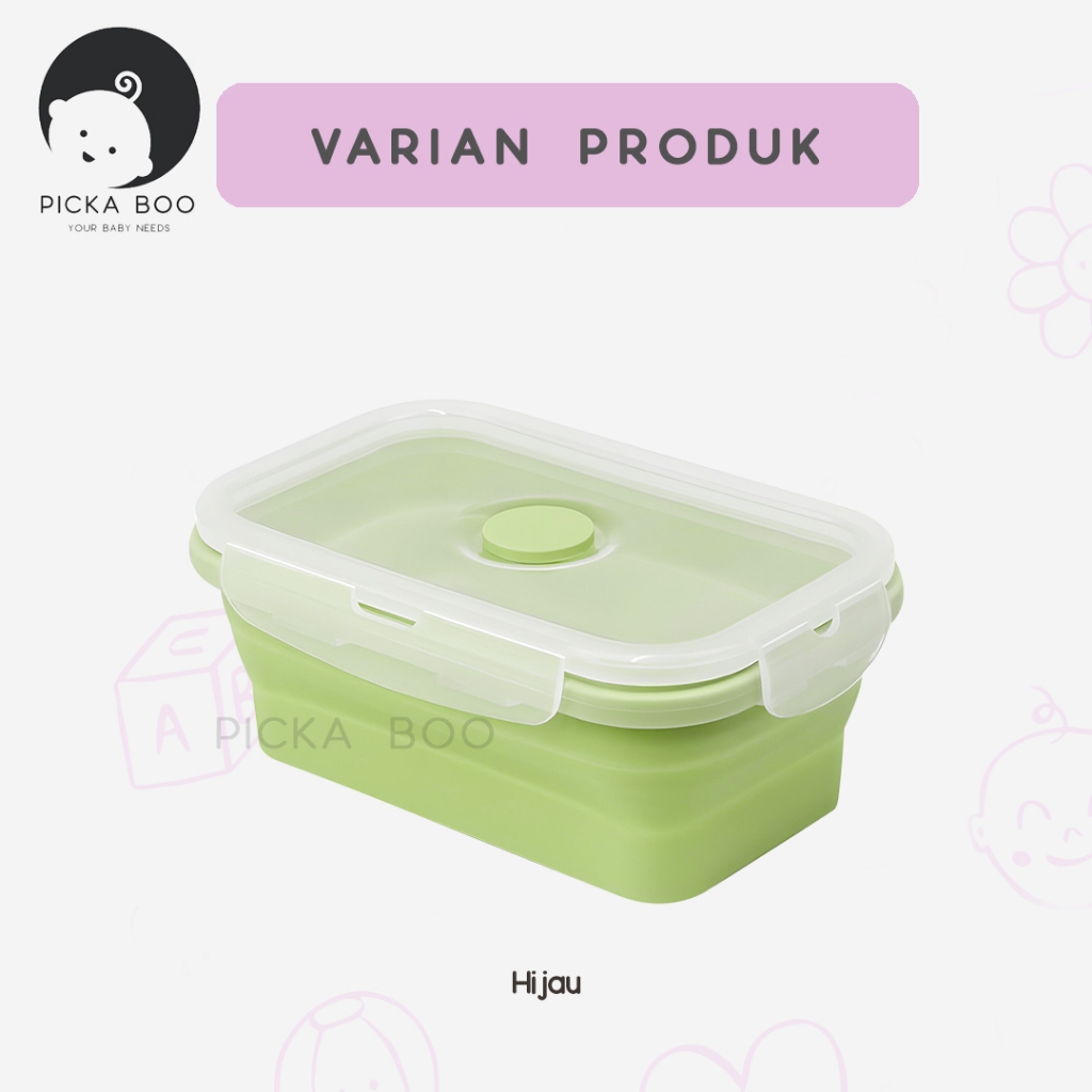 PICKA BOO Kotak MPASI Silikon Portabel Kotak Makanan Silikon Food Storage Kotak Penyimpanan Kontainer Makanan Bekal MPASI Bayi Bahan Silikon Ukuran 350 ml ,500 ml dan 800 ml cocok untuk Souvenir