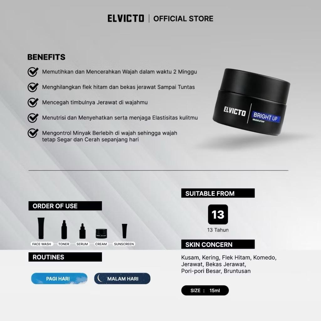 Elvicto Bright Up Moisturizer | Cream Pelembab Pencerah Pemutih Wajah Pria 15 Gr BPOM