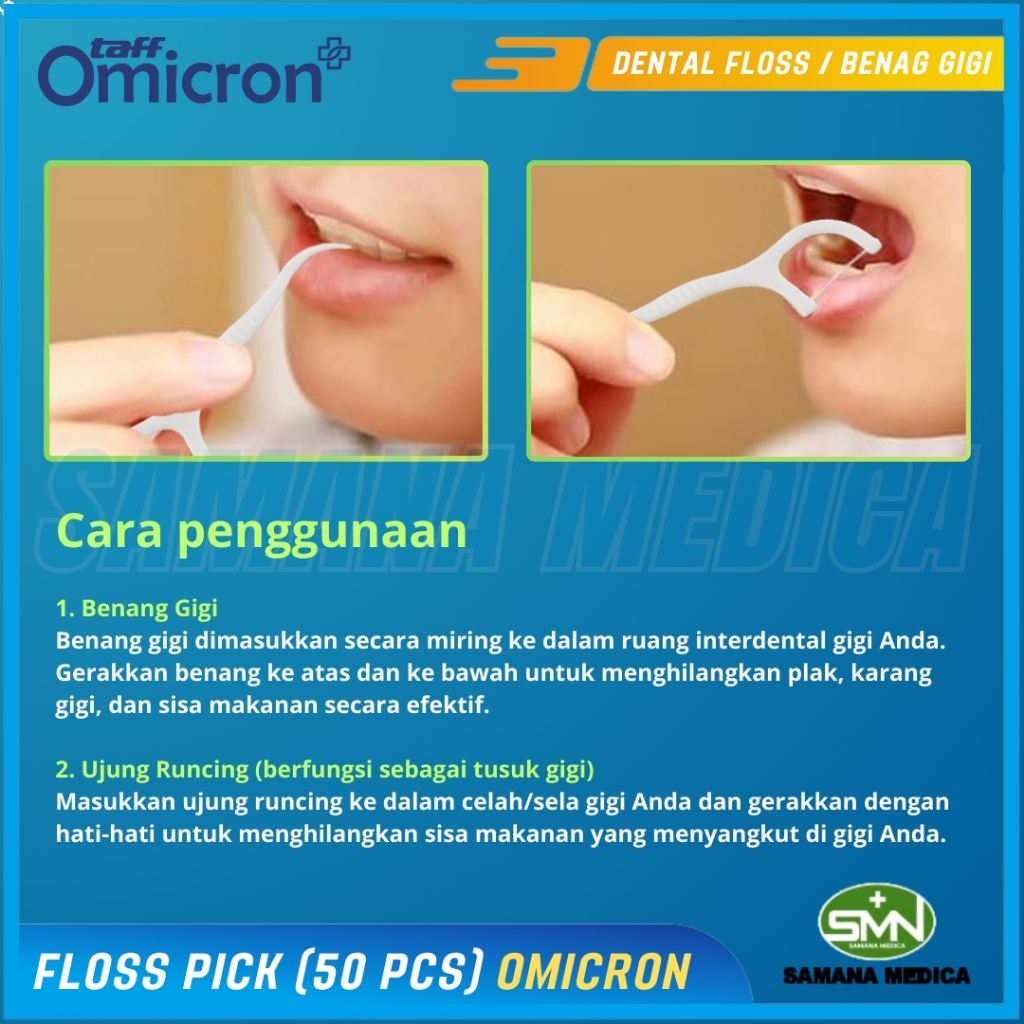 Dental Floss (50 pcs) TAFF OMICRON / Floss Pick / Dental Floss / Benang Gigi / Tusuk Gigi