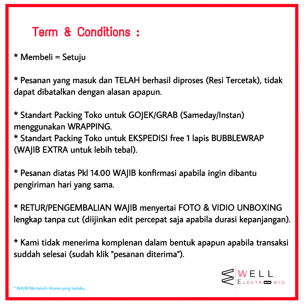 Bebas Pengembalian • Proteksi Elektronik
