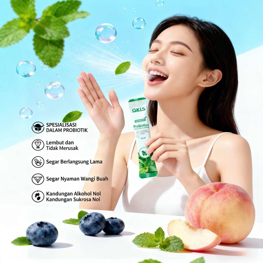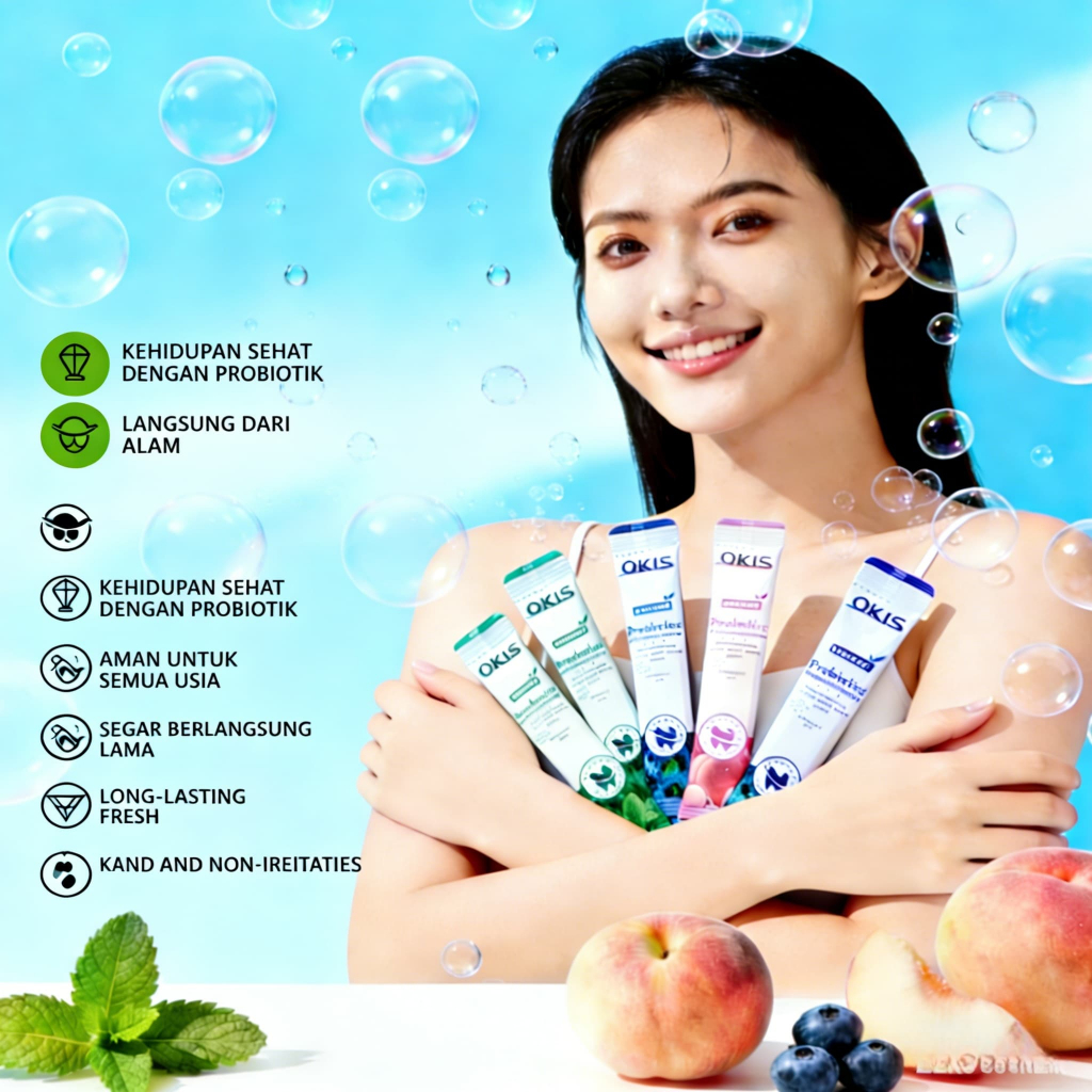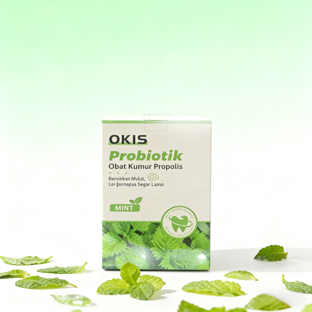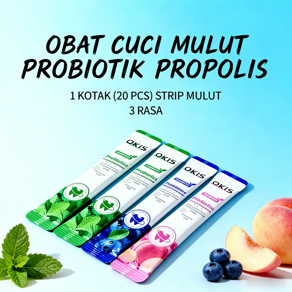 OKIS Obat Kumur Probiotik dan Propolis 20 Sachet per Kotak Menyegarkan Nafas Perawatan Mulut Tiga Rasa: Blueberry, Persik, Mint