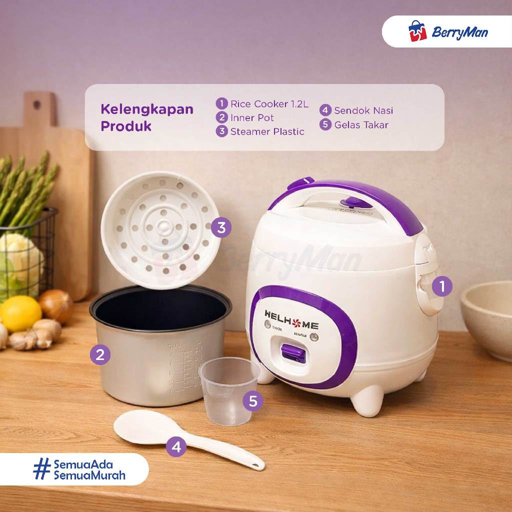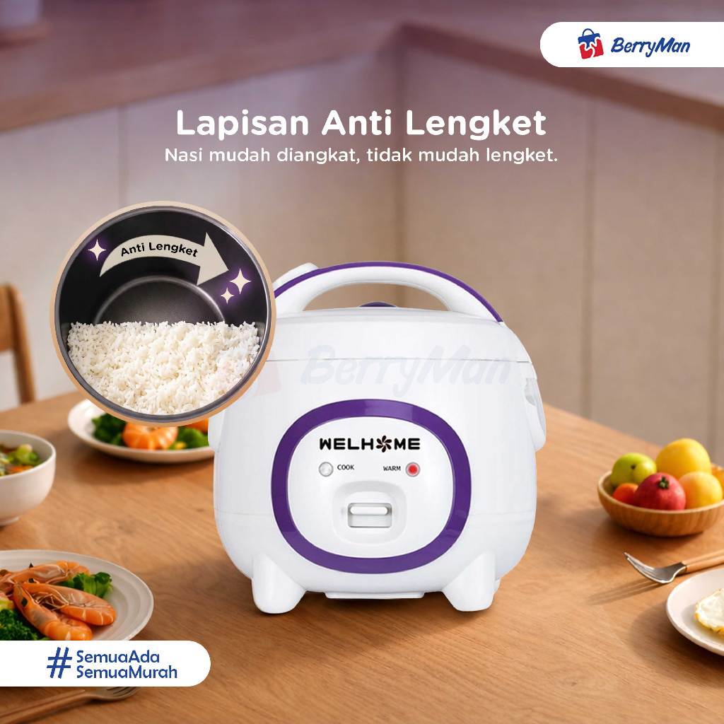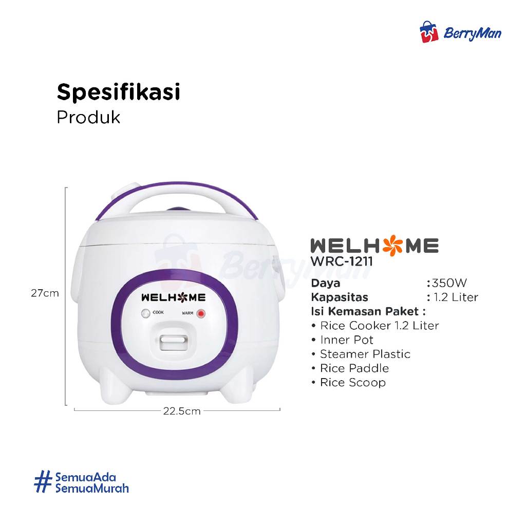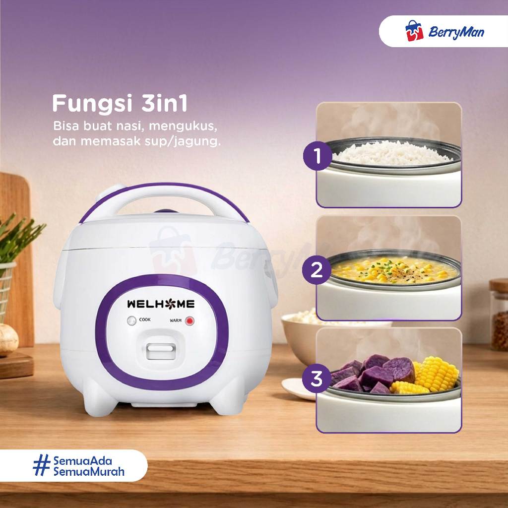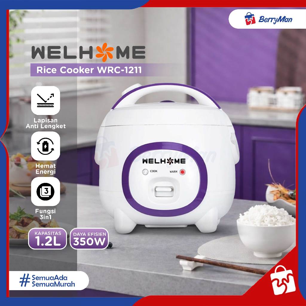 Rice Cooker WELHOME WRC-1211 3in1 Kapasitas 1.2 Liter