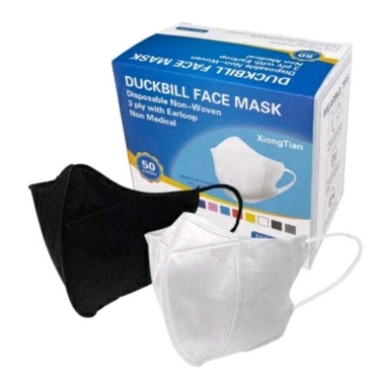 Masker Duckbill Facemask Hitam dan Putih Earloop mirip sensi/alkindo isi 50pcs