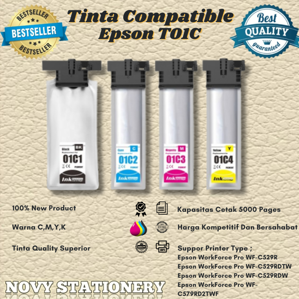 COMPATIBLE TINTA CARTRIDGE PIGMENT EPSON T01C1 T01C2 T01C3 T01C4 1PAKET =EPSON WORKFORCE PRO WF-C529R , WF-C529RDTW , WF-C529RDW