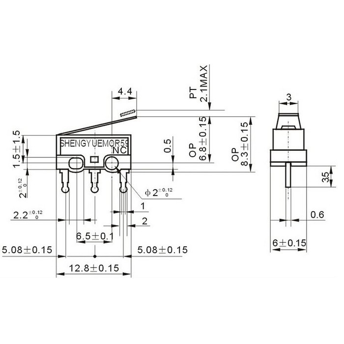 Limit switch tekuk kecil 3p mouse small micro switch + handle bisa NO NC