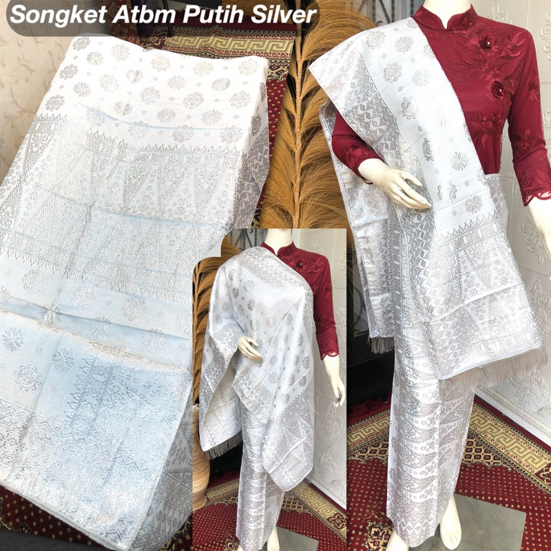 Songket Murah Putih Silver / Songket ATBM songket Tenun Mesin palembang /Songket pengantin