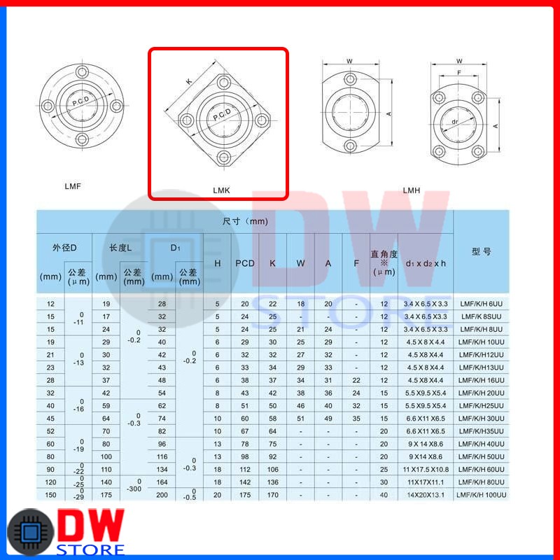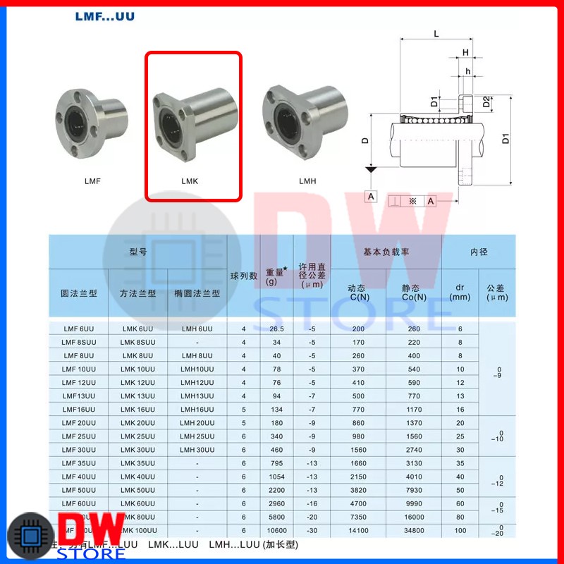 Linear Motion Ball Bearing LMK series LMK6UU LMK8UU LMK10UU LMK12UU