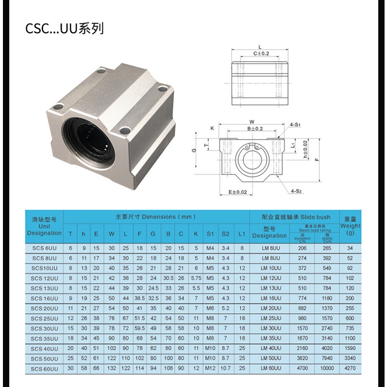Linear Slide Block SCS12UU Linear Bearing Block 20 Mm Ukuran 3D Printer CNC Sliding Block