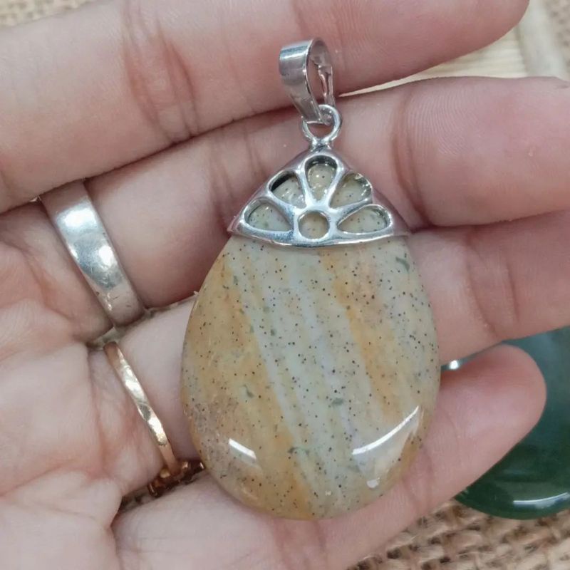 Liontin Batu Alam Pipih (Amethys,Tiger Eye,Pasir Mas,Agate,Jasper)